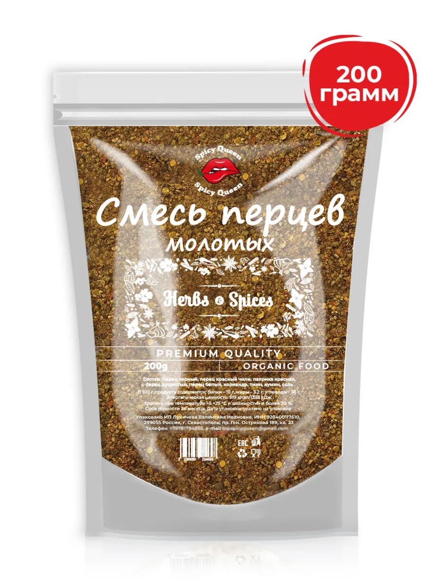 | Форма выпуска специй/приправ | Приправа Смесь Перцев Молотых 200 грамм |