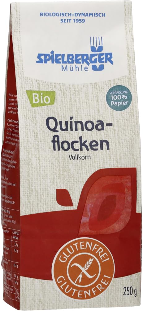 Finishing: For our quinoa flakes, the washed whole grain is first dampened and then rolled into a beautiful flake. This way, all the ingredients of the whole grain are retained. Certification enEU Bio-SealDeutsche Zöliakie Gesellschaft e.V. AOECS Association of European Celiac Societies INGREDIENTS Quinoa flakes, gluten-free INSTRUCTIONS FOR USE Simply mix with yoghurt, milk, plant-based alternatives or juice and enjoy hot or cold. See moreSpielberger Biologische glutenvrije quinoaflokken, kbA (2 x 250 gr) Afwerking: Voor onze quinoaflokken wordt de gewassen, hele korrel eerst gedempt en vervolgens gewalst tot een mooie vlok. Zo blijven alle ingrediënten van de volle korrel behouden. Certificering enEU Bio-SzegelDeutsche Zöliakie Gesellschaft e.V. AOECS Association of European Coeliac Societies INGREDIËNTEN Quinoaflokken, glutenvrij GEBRUIKSAANWIJZING Gewoon met yoghurt, melk, plantaardige alternatieven of sap mengen en genieten van warm of koud. Meer bekijken
