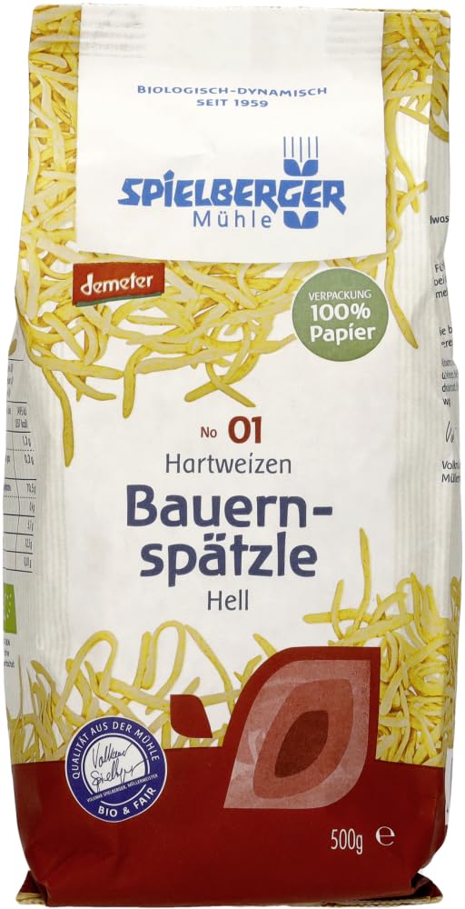 Certified organic in the EU. INGREDIENTS Durum wheat grits COOKING INSTRUCTIONS Boil the spätzle in plenty of boiling salted water for 12 to 15 minutes, until they are firm to the bite. SAFETY WARNING Allergy information: Contains gluten. Do not produce: eggs. See more