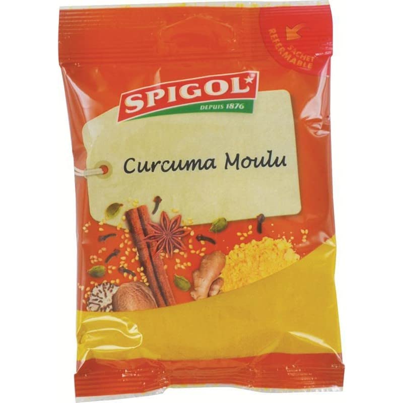 SPIGOL. SPIGOL - GROUND TURMERIC 90G BAG. Herbs and spices. Oils, spices, condiments, sauces, broths. Savory groceries.SPIGOL. SPIGOL - CURCUMA MOULU SACHET DE 90G. Herbes et épices. Huiles, épices, condiments, sauces, bouillons. Epicerie salée.