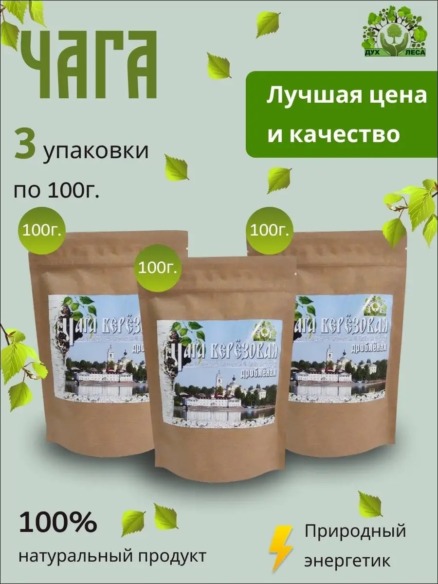 Дух Леса Чага березовая натуральная, измельченная 300 грамм (3х100)