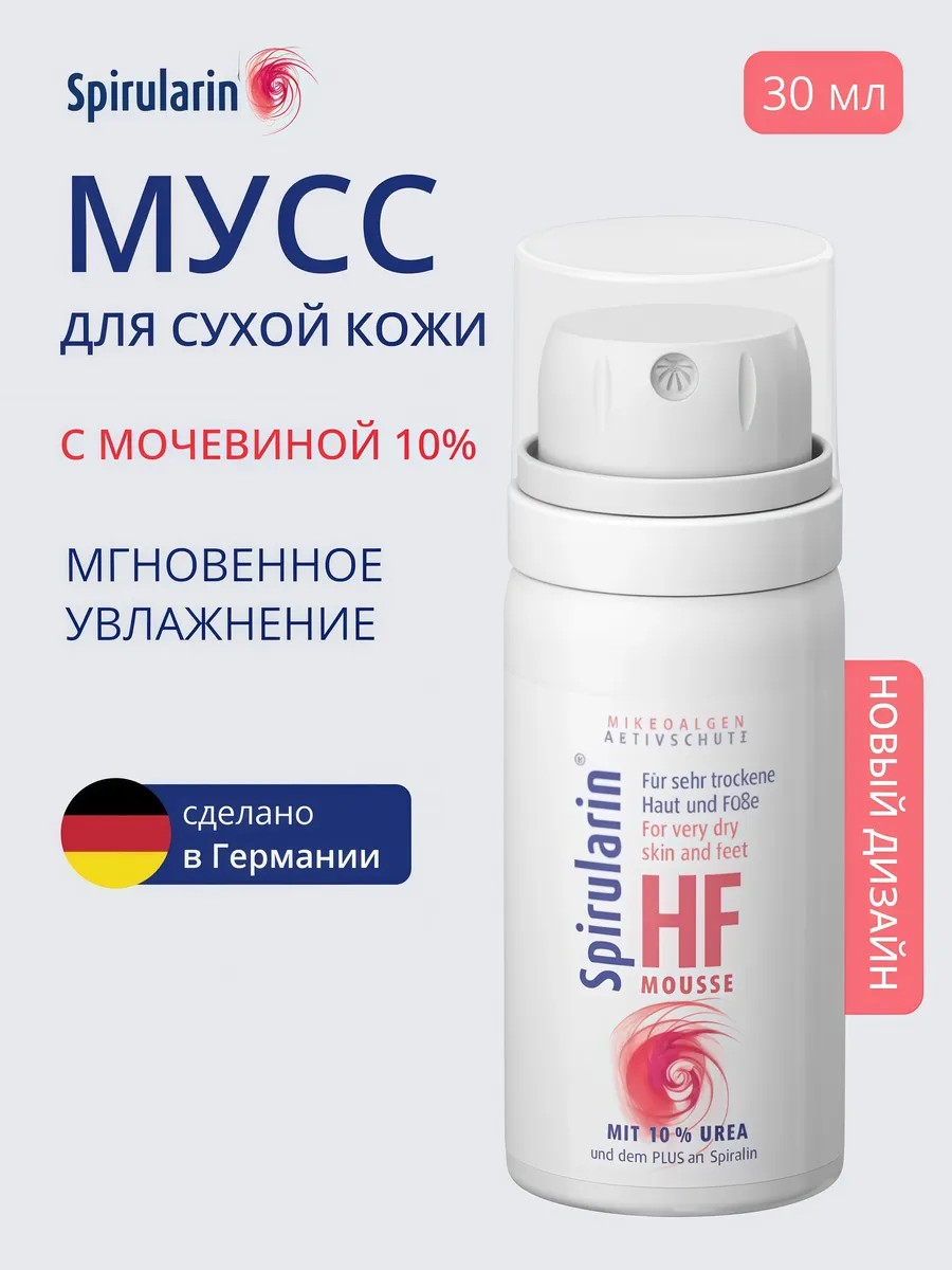 Мусс для сухой кожи Spirularin Mousse Plus- предназначен для проблемной, очень сухой и потрескавшейся кожи, избавляет от трещинок и чрезмерной сухости кожи ног. Увлажняющее профессиональное средство из Германии создано для эффективного ухода за кожей ног. Этот мусс для тела специально разработан для устранения сухости и трещин на пятках, а также для профилактики мазолей и натоптышей.