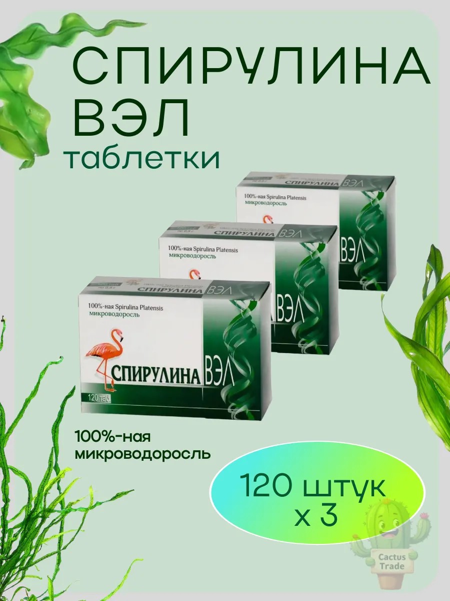| Комплектация | Спирулина вэл 120 шт. таблетки; Комплект из 3-х упаковок Спирулина вэл |