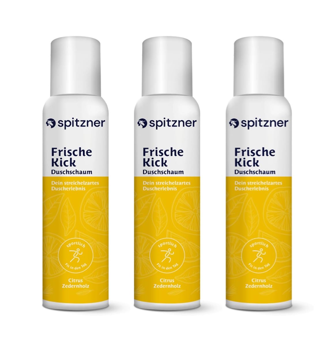 The Spitzner shower foam Citrus Cedar is a true pleasure for all the senses. The extraordinary scent of sparkling lime, refreshing bergamot and fine cedar wood and vetiver combines into a lively, charming composition that will accompany you all day long. Ideal after exercise and on hot summer days. In addition to its unique scent, the shower foam pampers your skin with a caressingly soft foam and gentle cleansing. The mild surfactants and a skin-friendly pH value ensure that your skin is noticeably gently cleansed. The shower foam is therefore ideally suited for the daily shower. All our shower foams have been dermatologically tested by an independent institute and awarded the rating "very good". So you can be sure that you are holding a high-quality product in your hands. In addition, our shower foams are convenient and leak-proof, so they are also ideal for on the go. Our shower foams are 100 vegan and free of parabens, silicones, PEG and mineral oils. They contain no alcohol, colorings or preservatives and no microplastics. This means that our products are not only good for you, but also for the environment. Our citrus cedar shower foam is very economical. Shake the box before use and then spray a walnut-sized amount of foam onto damp hands. Distribute the foam over your body as usual and enjoy the unique shower experience. With the 150 ml can you can enjoy approximately 60 unique shower experiences, with the 50 ml can 20 times. Treat yourself to a unique shower experience with our Citrus Cedar shower foam and experience a refreshing and invigorating shower that will put a smile on your face all day long.Practical twist-lock closure and durable packaging: Spitzner shower foam FrischeKick is equipped with a practical twist-lock closure, which allows easy dosing. The cans are made from 100 recycled aluminum to minimize our ecological footprint. Vegan and without artificial additives: FrischeKick shower foam is 100 vegan and does not contain additives such as parabens, silicones, PEG and mineral oils. We also avoid alcohol, dyes and microplastics to protect your skin and the environment. Gently relaxing and skin-friendly: Thanks to its mild surfactants and skin-friendly pH value, FrischeKick shower foam cleanses your skin gently and gently. Also suitable for sensitive skin types. Dermatologically tested and skin-friendly: Our shower foam has been dermatologically tested and awarded the rating "very good". Fresh Kick Shower foam – sporty fit of the day: with Spitzner shower foam Fresh Kick you experience the refreshing power of nature. The sparkling light aromas of green lime and bergamot combine with notes of noble cedar wood and vetiver to create a cheerful composition.Spitzner Citrus Ceder Doucheschuim, 3 x 150 ml, wellness-douche, zacht reinigend schuim, dermatologisch getest, veganistisch en huidvriendelijk, ideaal na het sporten Het spitzner doucheschuim Citrus Ceder is een waar genot voor alle zintuigen. De buitengewone geur van sprankelende limoen, verfrissende bergamot en fijn cederhout en vetiver combineert zich tot een levendige, charmante compositie die je de hele dag zal begeleiden. Ideaal na het sporten en op warme zomerdagen. Naast zijn unieke geur verwent het doucheschuim je huid met een streelzacht schuim en een zachte reiniging. De milde oppervlakteactieve stoffen en een huidvriendelijke pH-waarde zorgen ervoor dat je huid merkbaar zacht wordt gereinigd. Het doucheschuim is dus bij uitstek geschikt voor de dagelijkse douche. Al onze doucheschuimen zijn door een onafhankelijk instituut dermatologisch getest en bekroond met de beoordeling "zeer goed". Je kunt er dus zeker van zijn dat je een hoogwaardig product in je handen houdt. Bovendien zijn onze doucheschuimen handig en lekvrij, zodat ze ook ideaal zijn voor onderweg. Onze doucheschuimen zijn 100 veganistisch en vrij van parabenen, siliconen, PEG en minerale oliën. Ze bevatten geen alcohol, kleur- en conserveringsmiddelen en geen microplastic. Daarmee zijn onze producten niet alleen goed voor jou, maar ook voor het milieu. Ons doucheschuim Citrus-ceder is zeer zuinig. Schud de doos voor gebruik en spuit vervolgens een walnoot tot vuistgrote hoeveelheid schuim op de vochtige handen. Verdeel het schuim zoals gebruikelijk over je lichaam en geniet van de unieke douche-ervaring. Met het blikje van 150 ml kun je genieten van ongeveer 60 unieke douche-ervaringen, met de 50 ml blik 20 keer. Gun jezelf nu de unieke douche-ervaring met onze doucheschuim Citrus-ceder en ervaar een verfrissende en verkwikkende douche die je de hele dag lang een glimlach op je gezicht tovert.Praktische Twist-Lock-sluiting en duurzame verpakking: spitzner doucheschuim FrischeKick is uitgerust met een praktische twist-lock-sluiting, die een eenvoudige dosering mogelijk maakt. De blikjes zijn gemaakt van 100 gerecycled aluminium om onze ecologische voetafdruk te minimaliseren. Veganistisch en zonder kunstmatige toevoegingen: doucheschuim FrischeKick is 100 veganistisch en bevat geen additieven zoals parabenen, siliconen, PEG en minerale oliën. Wij zien bovendien af van alcohol, kleurstoffen en microplastics om je huid en het milieu te beschermen. Zacht ontspannend en huidvriendelijk: dankzij zijn milde oppervlakteactieve stoffen en de huidvriendelijke pH-waarde reinigt doucheschuim FrischeKick je huid zacht en voorzichtig. Ook geschikt voor gevoelige huidtypes. Dermatologisch getest en huidvriendelijk: onze doucheschuim is dermatologisch getest en bekroond met de beoordeling "zeer goed". Fresh Kick Doucheschuim – sportief fit van de dag: met spitzner doucheschuim Fresh Kick beleef je de verfrissende kracht van de natuur. De sprankelende lichte aroma's van groene limoen en bergamot combineren met aantooningen van edele cederhout en vetiver tot een vrolijke compositie.