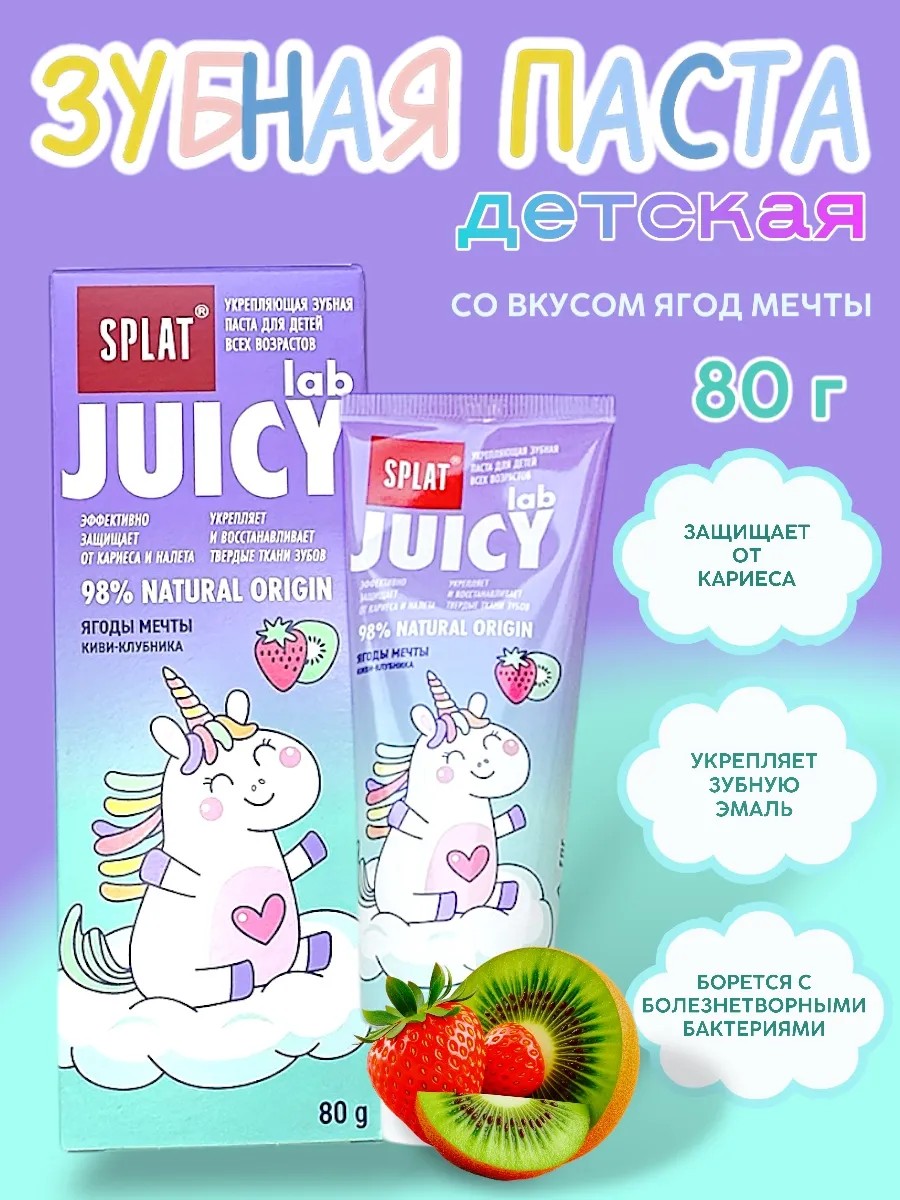 Splat Juicy Lab "Dream Berries" - children's toothpaste, 80 g with kiwi and strawberry flavor.