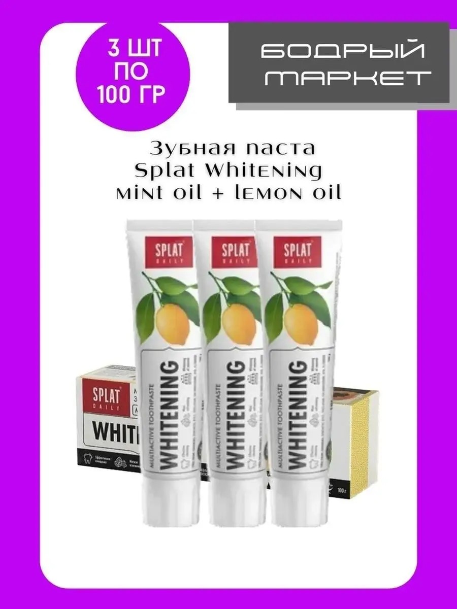 Комплект 3шт. Мультиактивная зубная паста Mint oil+ lemon oil Whitening Эффективное очищение, Мятное освежение и Осветление эмали. Содержит: Эфирные масла лимона и мяты перечной, натуральные эфирные масла лимона и мяты перечной, что обеспечивает свежесть дыхания, снижение кровоточивости дёсен, отбеливание зубов. Обладает антисептическим действием. Лимонная зубная паста. Цитрусовая зубная паста. Мятная зубная паста.