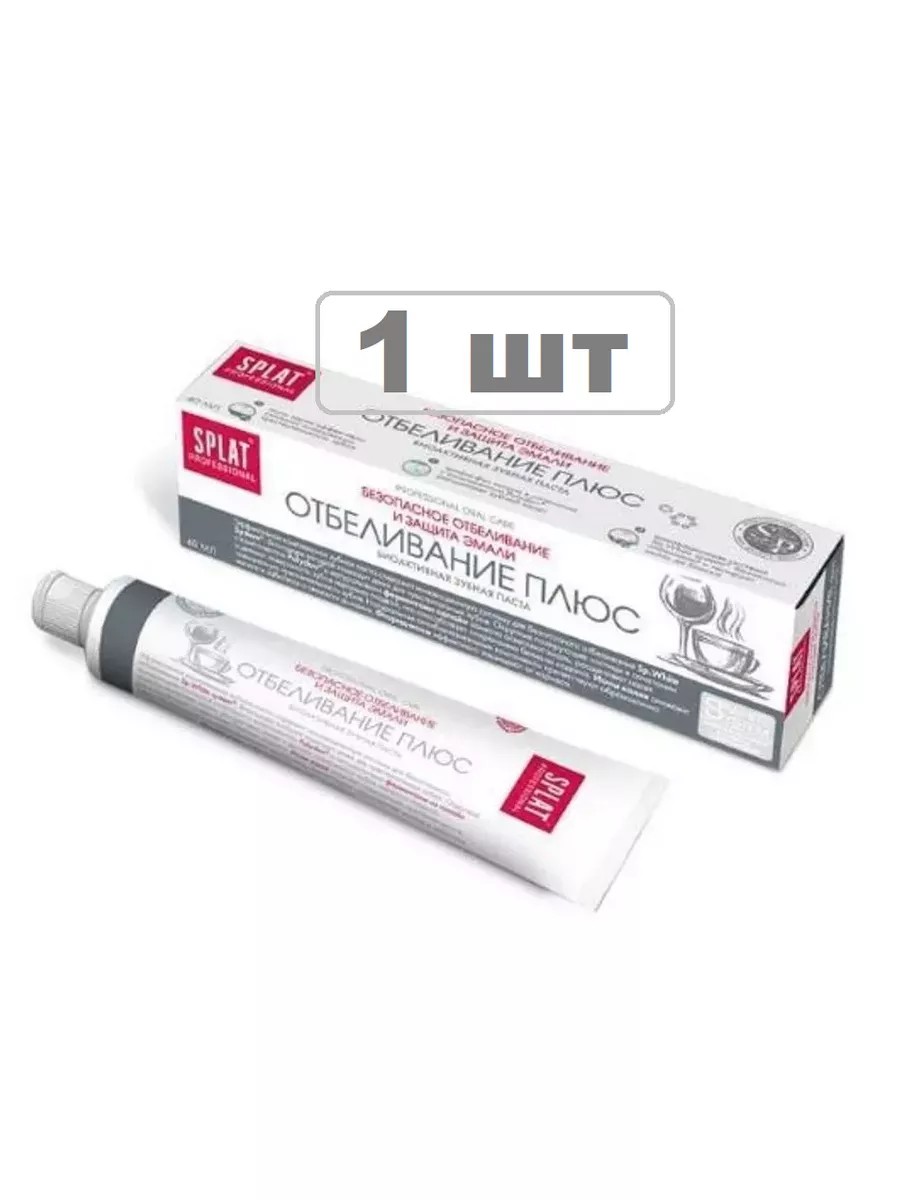 Splat Professional Toothpaste White Plus 40ml. Ingredients: Spirulina platensis microalgae, chalk, silicon dioxide, trisodium phosphate, titanium dioxide. Indications: whitening and removing plaque from tea, coffee, and tobacco. Action: restores the natural whiteness of enamel, prevents the formation of dental plaque. Toothpaste: Aqua, Hydrogenated Starch Hydrolysate, Hydrated Silica, Potassium Nitrate, Dicalcium Phosphate Dihydrate, PEG-8, Calcium Pyrophosphate, Pentasodium Triphosphate, Aroma, Sodium Coco-Sulfate, Cellulose Gum, Sodium Monofluorophosphate, CI 77891, Sodium Lauroyl Sarcosinate, PVP, Sodium Methylparaben, Sodium Saccharin, Menthol, Papain, Limonene