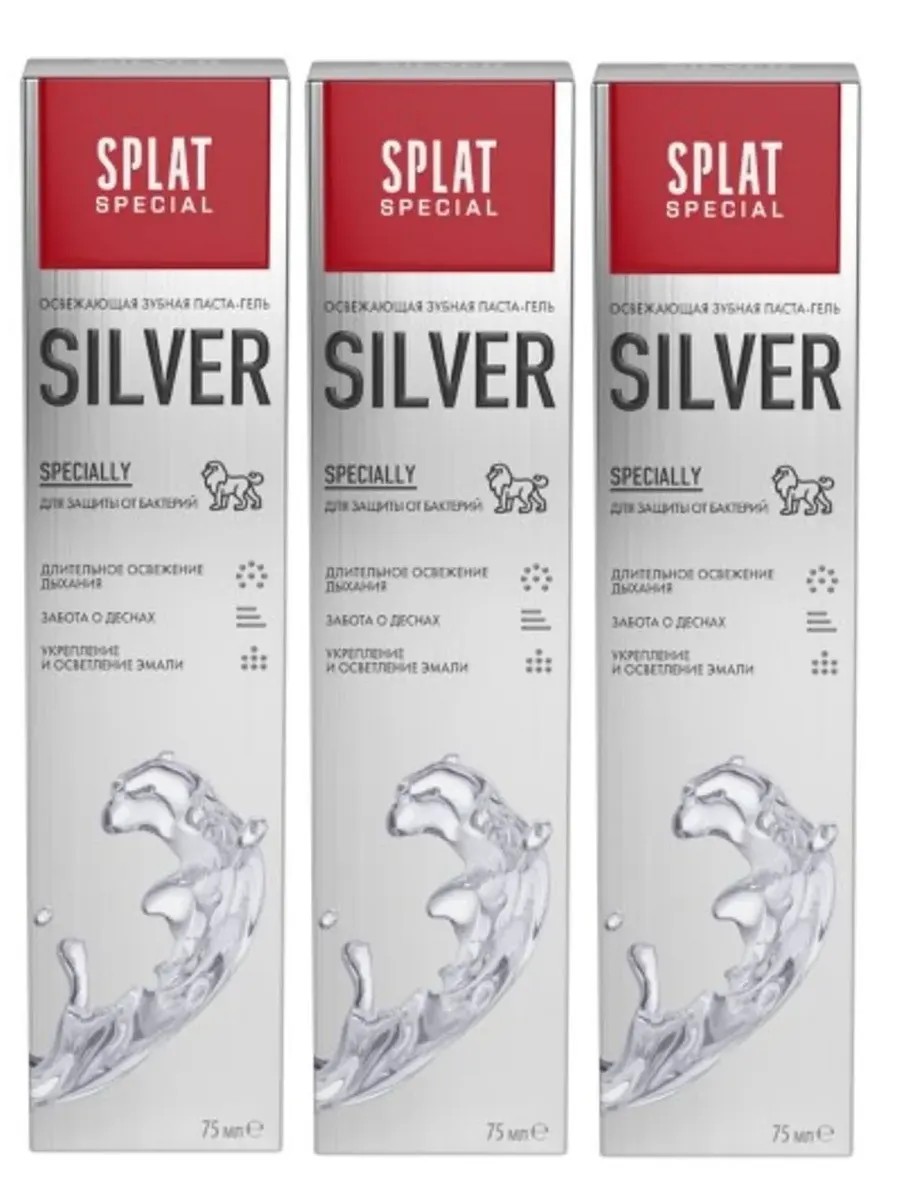 splat special toothpaste silver 75ml. for protection against bacteria, long-lasting breath freshening, gum care, strengthening and whitening of enamel, oral hygiene silver, zinc gluconate, perilla extract, peppermint essential oil, the splat brand is a leading developer and manufacturer of professional solutions in the oral care categories. splat special toothpaste silverappearance:• consistency - pasty texture• color - silverspecial features:toothpaste does not contain:sls / sles, peg, parabens, triclosan, chlorhexidine, saccharin, synthetic dyesall innovative and unique toothpastes of the special series were created in the splat scientific laboratory for active and modern people who are not afraid to experiment, live brightly and care about their health.an emotional series of unique products, each of which is created taking into account the ideas and wishes of our customers. Toothpastes in this series feature a rich formula enriched with exclusive ingredients. Splat Special Silver, an antibacterial refreshing toothpaste for gentle enamel whitening and protection from bacteria, 75 ml. Active silver, zinc gluconate, perilla extract, and peppermint essential oil inhibit bacterial activity and provide long-lasting fresh breath. Ratania extract and the antibacterial component bisabolol care for gums. Hydroxyapatite, enriched with calcium, magnesium, and zinc minerals, intensively strengthens enamel and has an antibacterial and anti-inflammatory effect. In 90% of cases, volatile sulfur compounds—hydrogen sulfide, methyl mercaptan, and dimethyl sulfide—are the cause of unpleasant odor. Zinc, having a chemical affinity for sulfur, binds to it, forming non-volatile compounds that are odorless. However, the cause of bad breath is also the proliferation of bacteria in the oral cavity, and silver in its active form has an antibacterial effect. Peppermint essential oil contains menthol, and trm8 is a heat-sensitive protein.