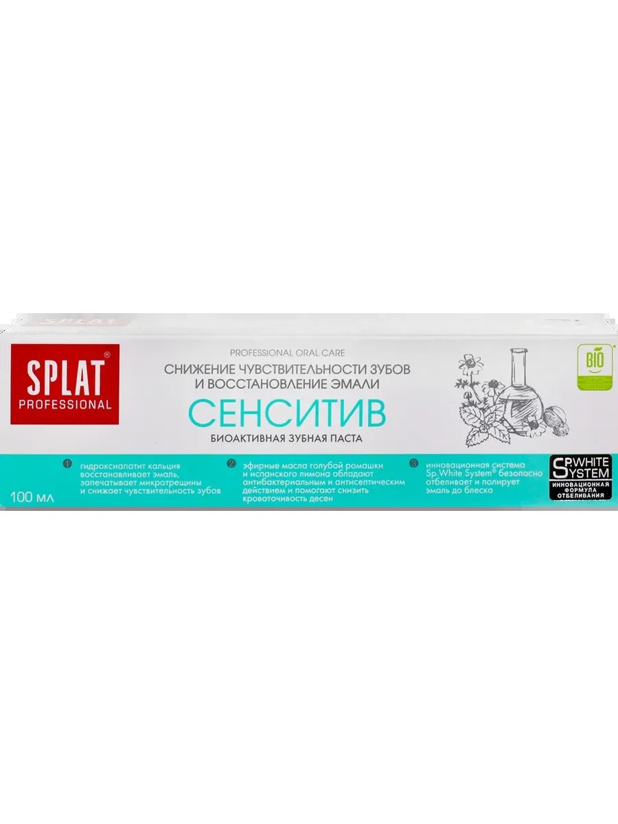 SPLAT Professional Sensitive toothpaste replenishes mineral loss and reduces tooth sensitivity.