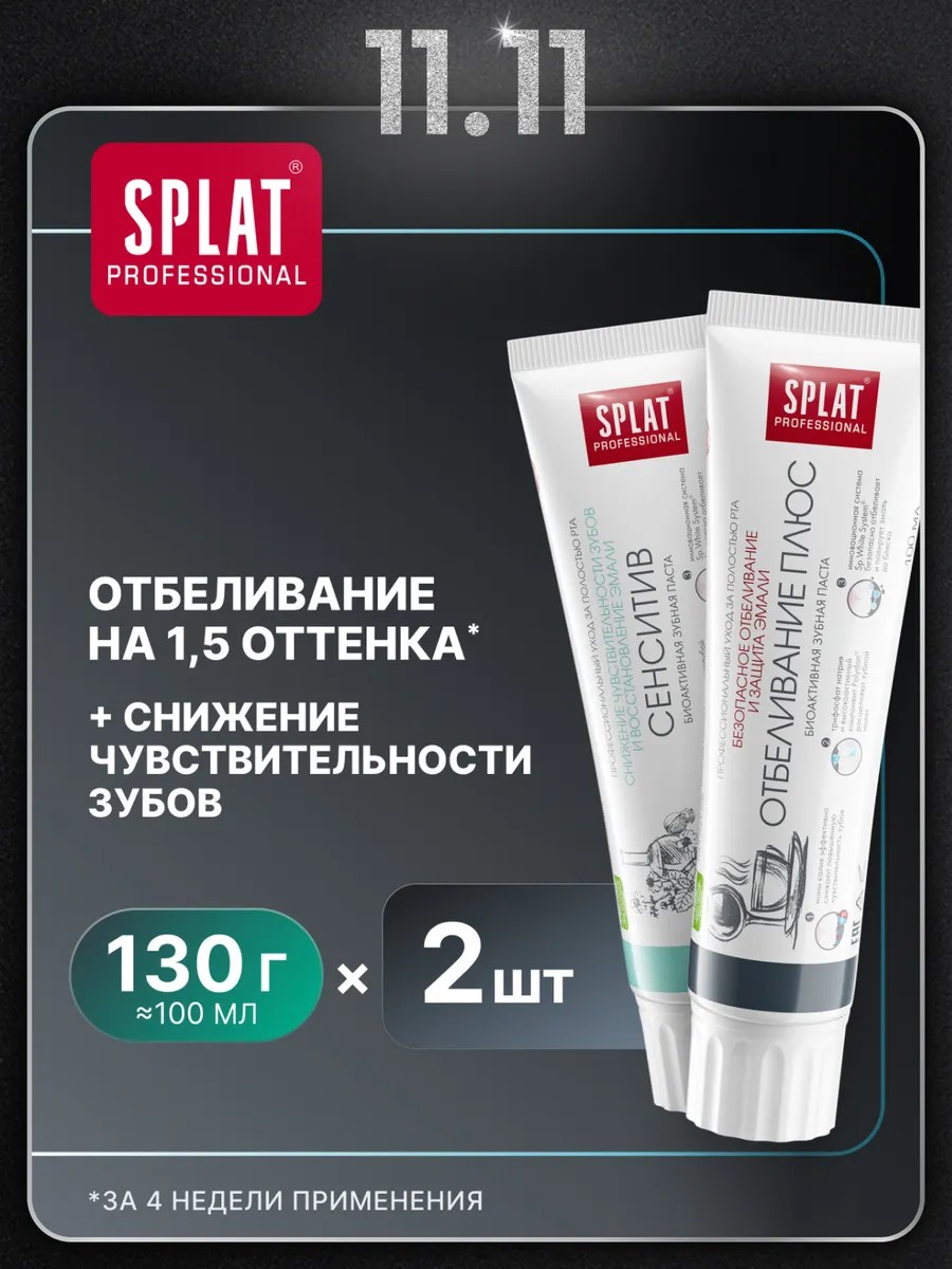 SPLAT Зубная паста Отбеливание плюс и сенситив 2шт