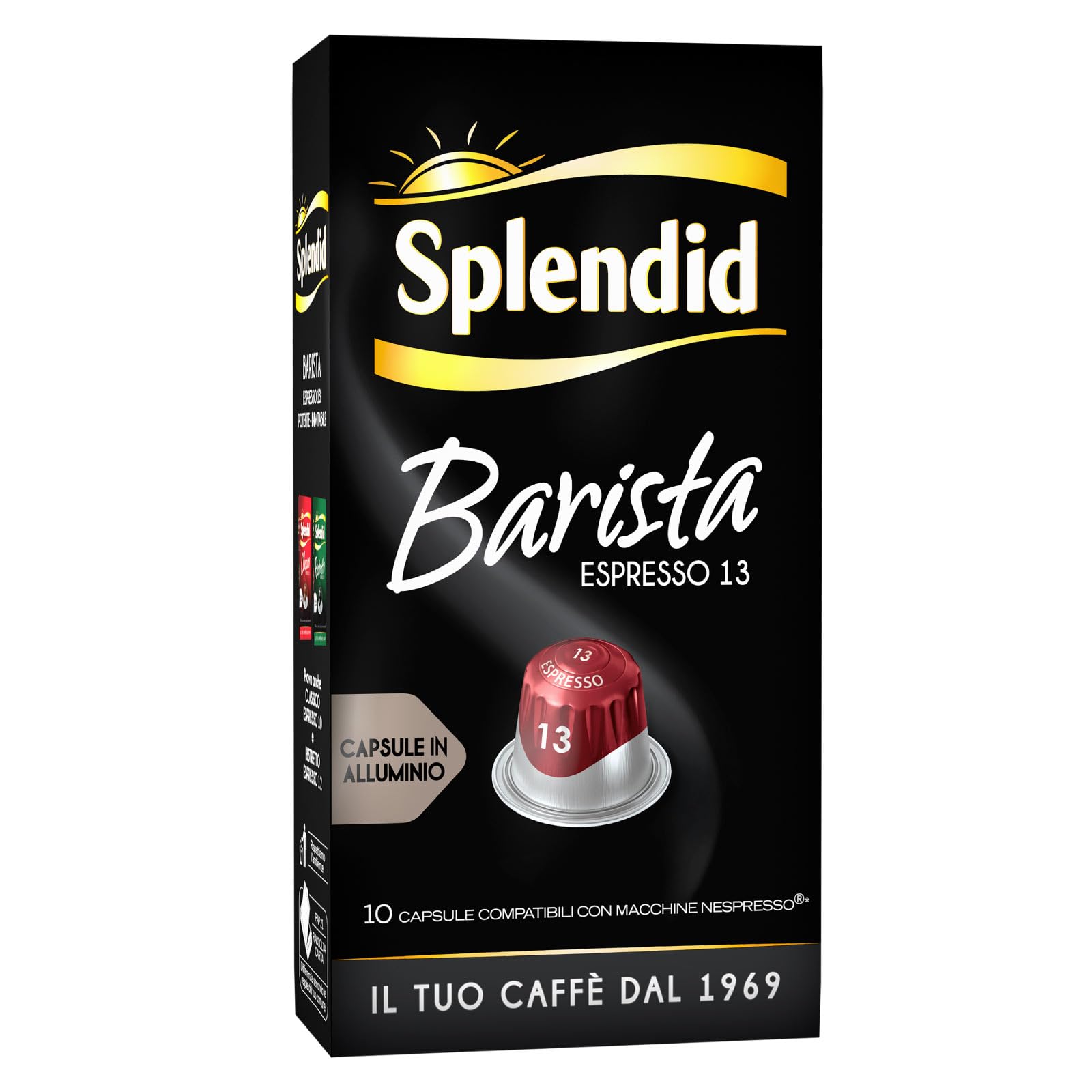 Splendid Splendid Caf Espresso Barista Aluminum Capsules Intensity 13 Arabica Beans Robust Powerful and Full-Bodied Aroma with Notes of Chocolate and Caramel Compatible with Nespresso Machines - 10 Capsules