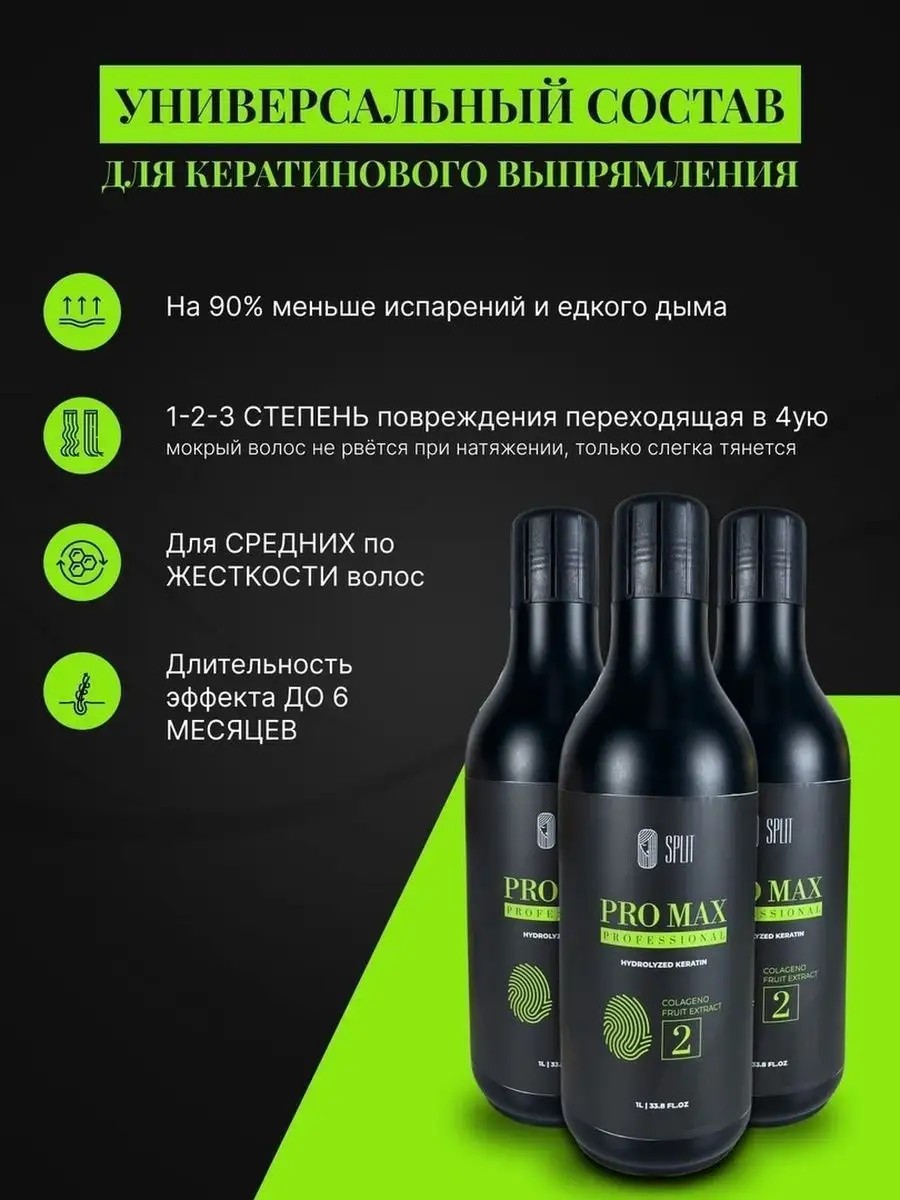Уход за волосами профессиональный Split - гарантированный результат. Бренд, который создан по последним технологиям 2022 года и собравший в себе лучшее из составов! Почему SPLIT?Кератин для волос имеет универсальный состав. Подходит для блонда до 3 степени и для любого завитка, кроме этно.Кератин для выпрямления волос создавался преимущественно для волоса средней плотности, не тугого и не толстого.Длительная носка составаСостав лёгкий в работе. Сам себя нанёс — сам себя выпарил.Минимум испарений.Кератин для волос состав-последняя разработка 2022 года, которая безупречно убирает ёлку. Волосы обретают зеркальный блеск.Содержит гидролизованный кератин , что обеспечивает эффект плотных кончиков! Кератиновое выпрямление волос. Средства для волос.Профессиональный уход за волосами. На что похож ?Собрат Love Potion , Copacabana btx, Fox gloss , Beauty professionalСредство для волос. Кому не подойдёт ?Пустым блондам от 4 степени и толстым волосам, а также афро .Кератин профессиональный. Инструкция:1. Промыть волосы шампунем глубокой очистки 2−3 раза.2. Высушить на 80%3. Делим волосы на 4 зоны. Используя кисть наносим состав тонким слоем, отступая от кожи головы 1 см. Излишки счесываем расческой.4. Выдержка 20−30 минут5. Высушить волосы феном на 100 % по росту волос, используя теплый поток воздуха.6. Делим волосы на 4 зоны. Выпариваем состав отделяя толщиной не более 0,6 мм (полупрозрачная прядь). Выпариваем медленно: максимум 15 протяжек по длине и до 6 по кончикам, протяжки не считаем, выпариваем до рассыпчатости). Рекомендуемая температура 200−230 градусов.7. Даем самостоятельно остыть волосам 5−15 минут.8. Смываем состав проточной водой и наносим маску 3 шаг на 10−15 минут.9. Смываем маску, наносим термозащиту и приступаем к финальной сушке.Кератиновое выпрямление. Процедура завершена. Средство для выпрямления волос не рекомендуется беременным , кормящим и детям до 16 лет.Бренд, покоривший сердца миллионов мастеров по всему миру, теперь и в России!