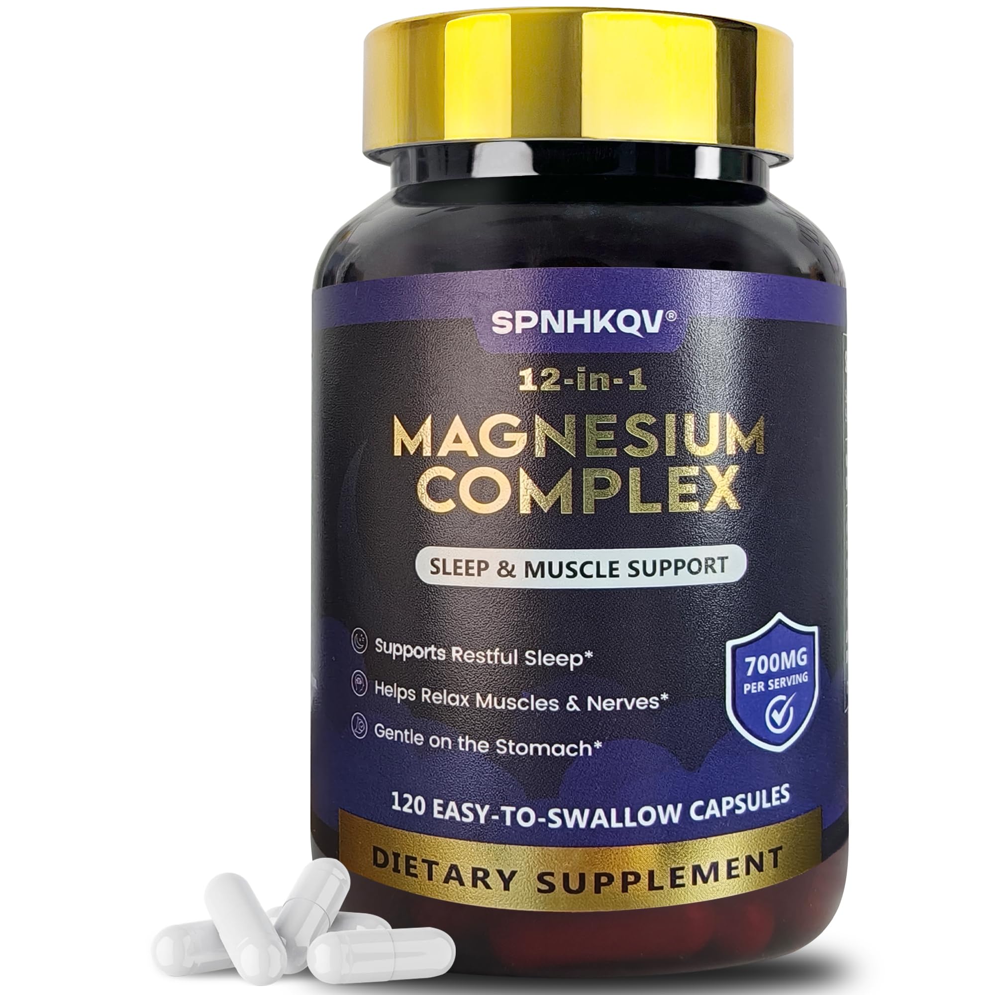 SPNHKQV Magnesium 12-in-1 Complex Supplement 700mg High Absorption Magnesium Glycinate Capsules for Women & Men Muscle Nerve & Sleep Support 120 Vegan Capsules