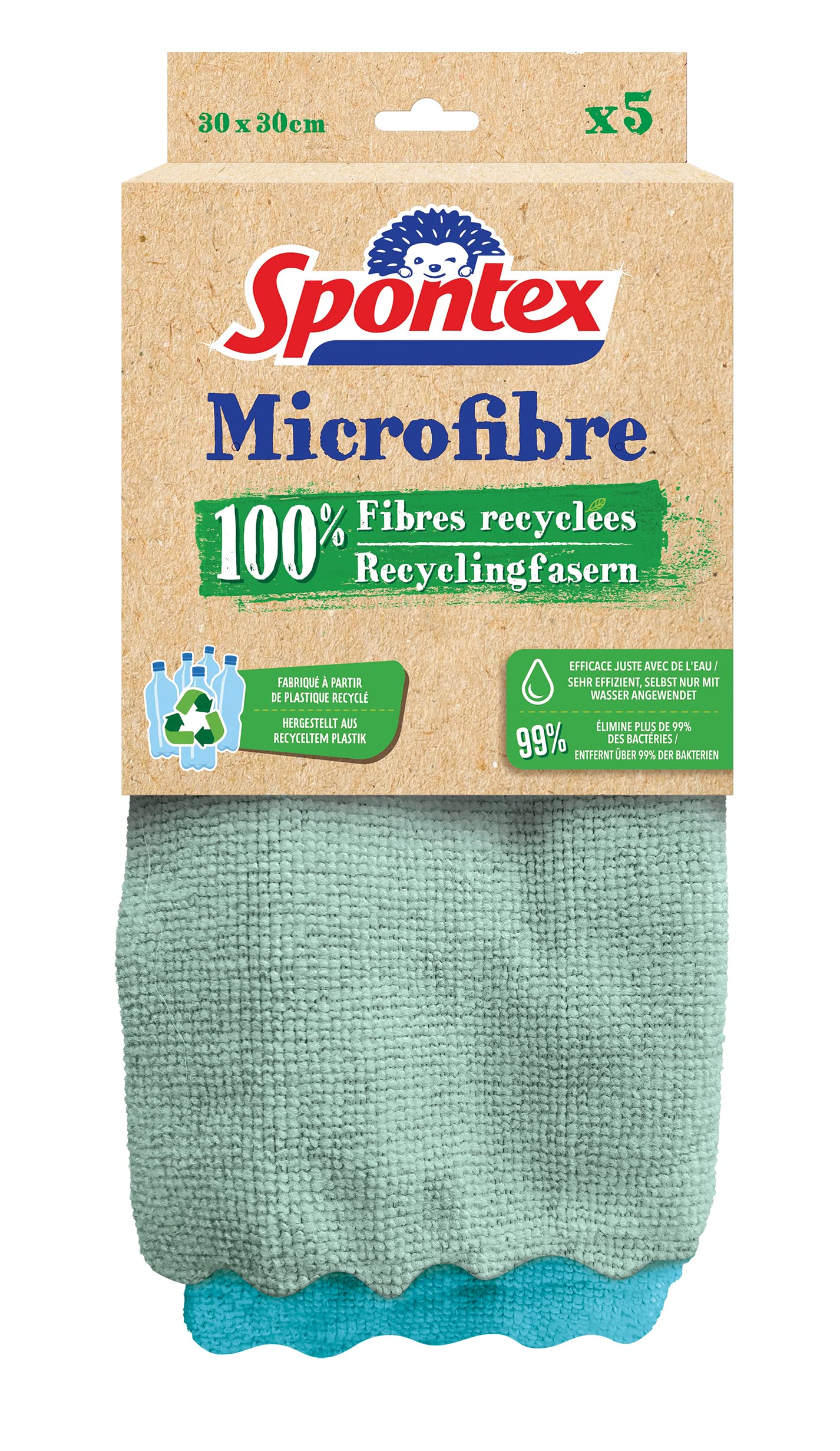 Spontex Microfibre Recyclingsfasern x5 - 100% recycelte Fasern aus mehr als 22 recycelten PET Flaschen