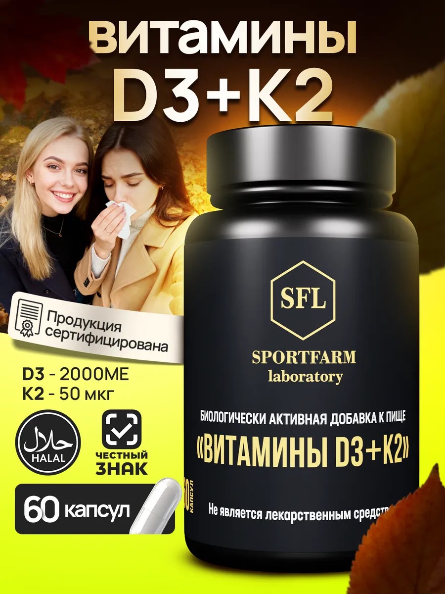 SportFarm laboratory Витамины Д3 2000 МЕ К2 БАД 60 капсул 380 мг