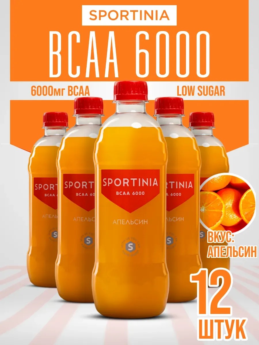SPORTINIA Вода с BCAA 6000 500 ml Апельсин 12 штук