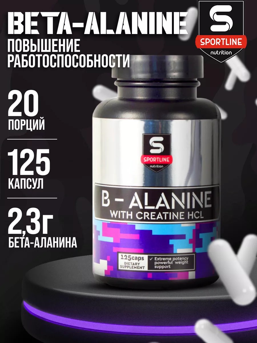 SportLine Nutrition B-Alanine + Creatine HCL / Аминокислота / Бета-аланин / 125 капс.Комплекс, включающий в себя проверенные временем ингредиенты с доказанной эффективностью, и воздействием усиливающим работу друг друга. Бета-Аланин предотвращая нервно-мышечное утомление, повышает работоспособность и силовую выносливость. Благотворно сказывается на сжигании жира и росте мышечной ткани. Креатин гидрохлорид помогает сохранить высокий уровень энергетических запасов в клетках, при регулярных физических нагрузках. Увеличивает силовые показатели и общую работоспособность.В качестве пищевой добавки, принимать по 6 капсул за полчаса до тренировки, и сразу после нее.