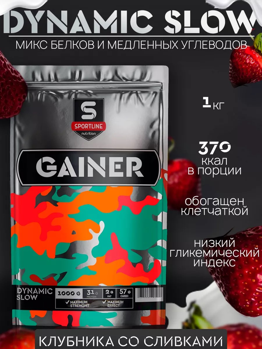 Гейнер Dynamic Slow 1 кг Клубника со сливками
