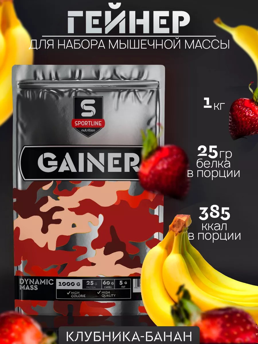 Гейнер 1кг для быстрого набора массы и веса Клубника-Банан