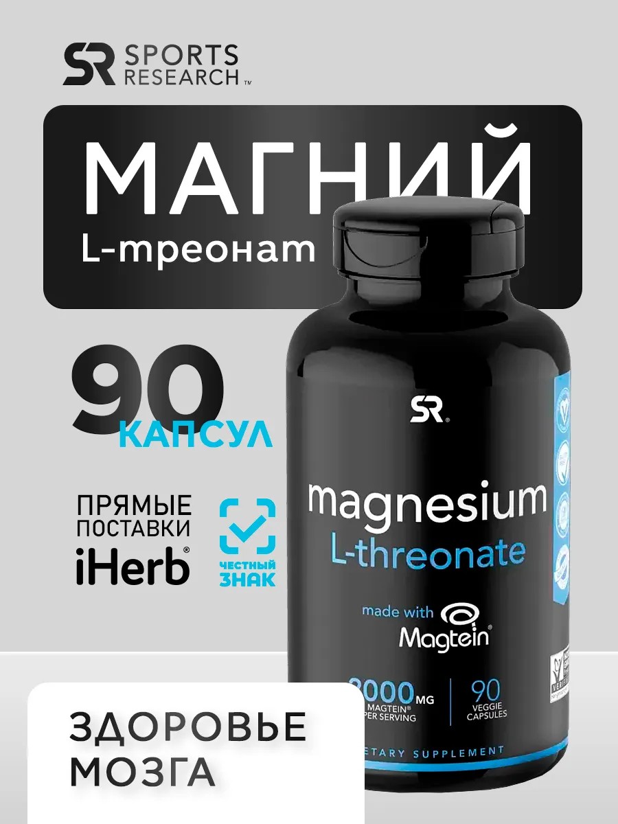 Sports Research Магний sport research треонат 2000 мг 90 капсул