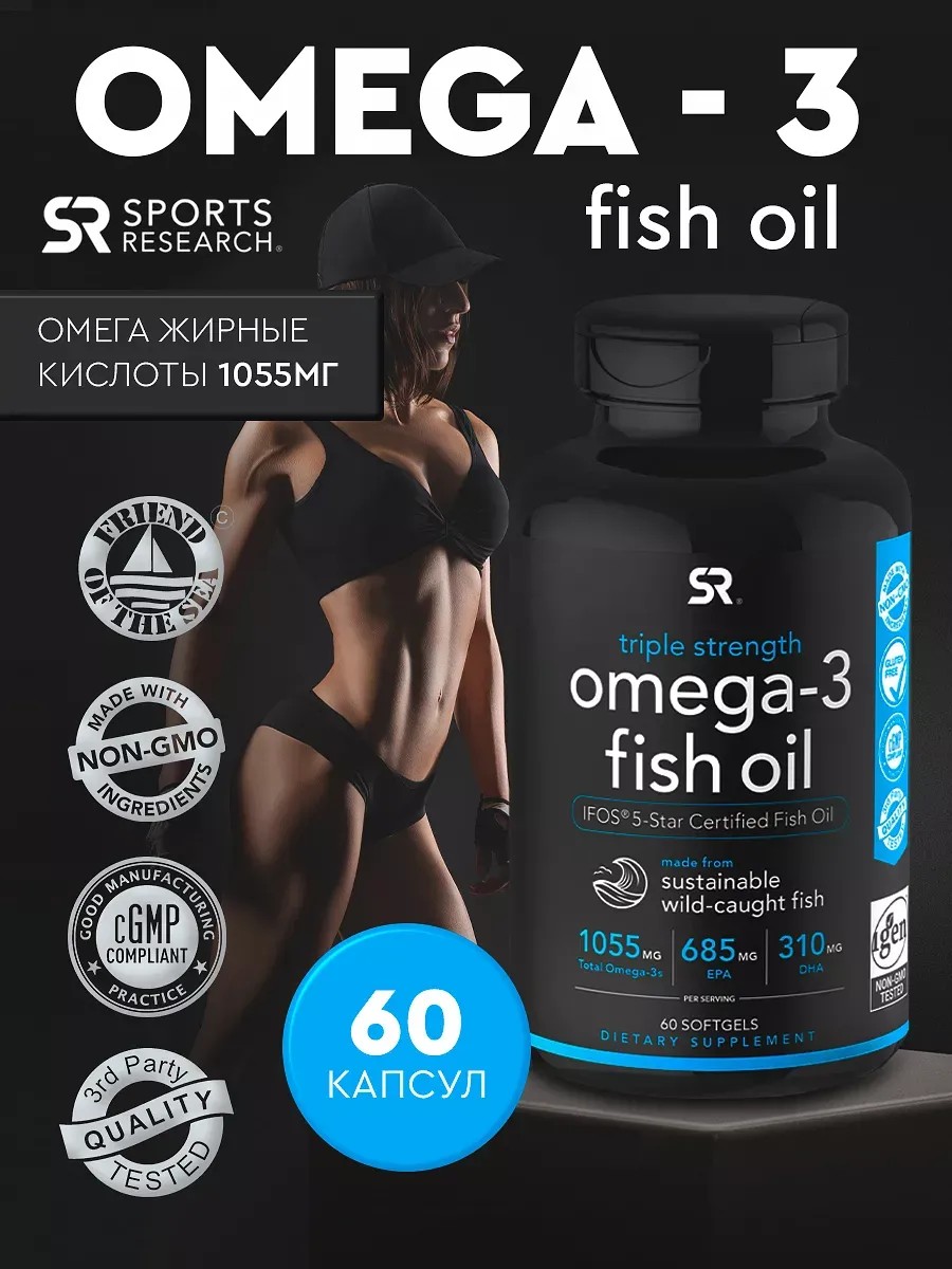 Омега-3 Sports Research это рыбий жир содержащий жирные омега кислоты высокой концентрации, предназначенные для поддержания здоровья сердца, мозга, суставов и костей, а также для укрепления иммунной системы и улучшения спортивных результатов.