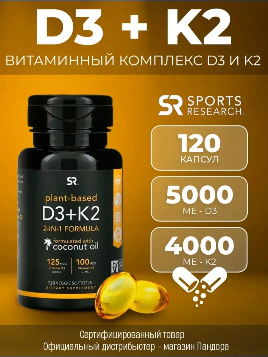 Витамин Д3+К2 5000 ME 120 капсул для иммунитета
