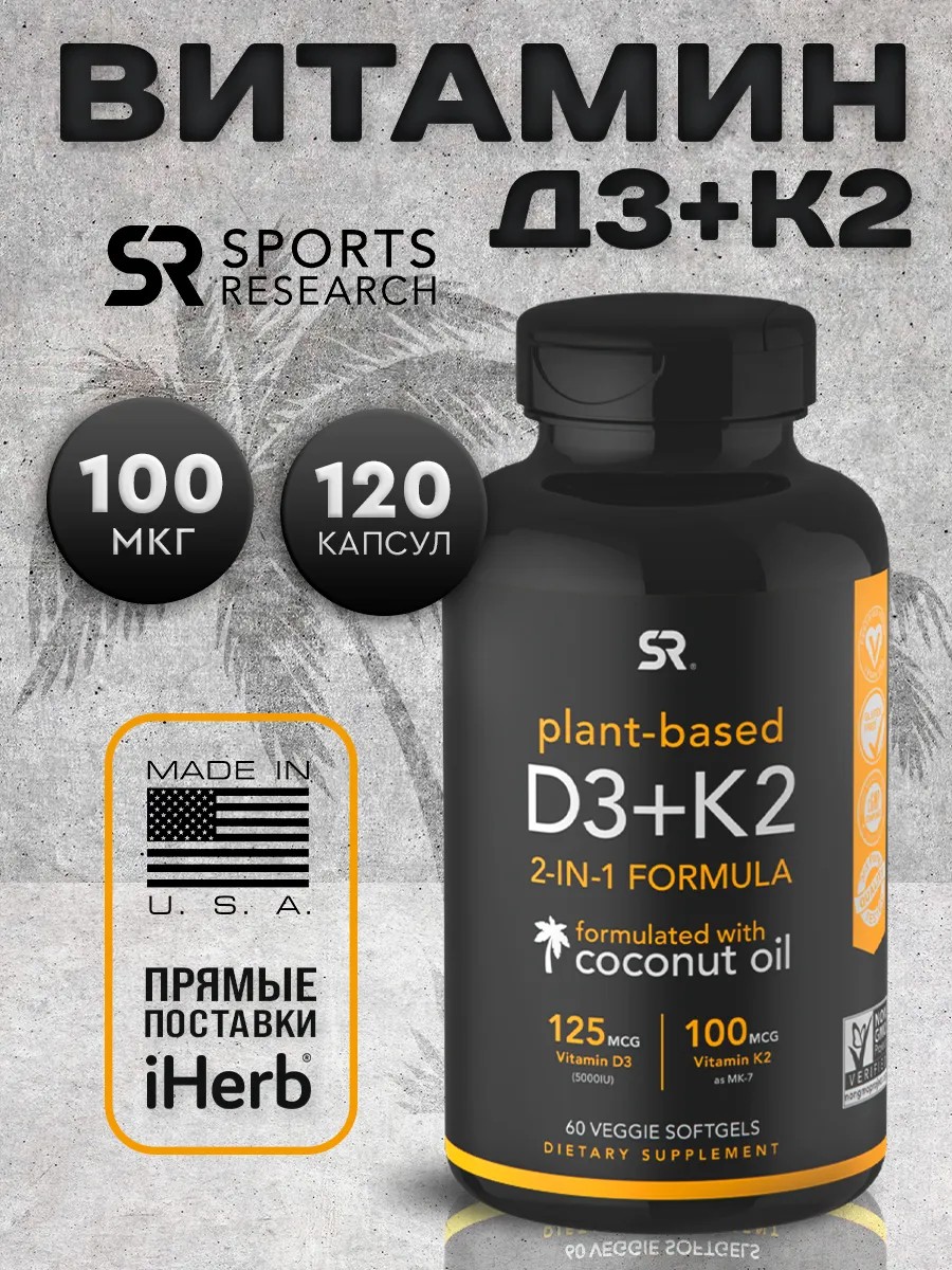 Витаминный комплекс D3 + K2 от Sports Research — это синергическая формула премиум-класса, созданная для максимального усвоения кальция, поддержки сердечно-сосудистой системы и укрепления иммунитета.