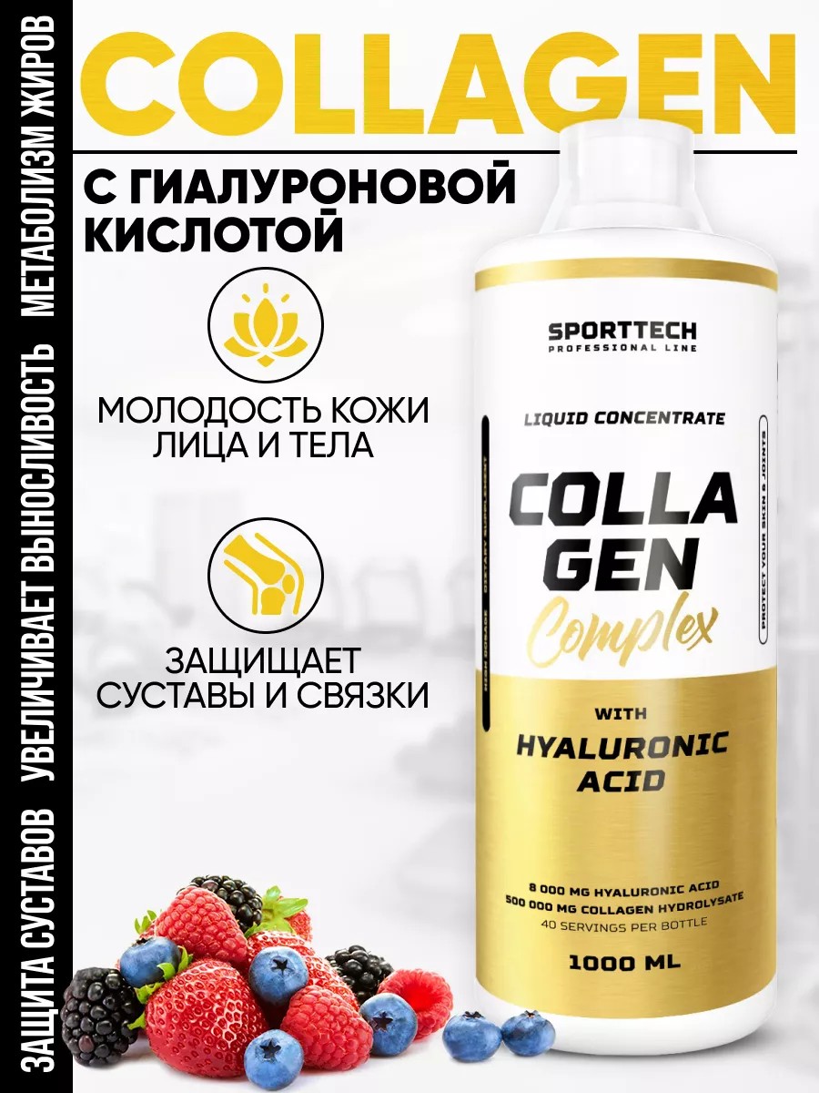 SPORTTECH Collagen Complex - уникальный легкоусвояемый жидкий комплекс аминокислот из гидролизата коллагена и гиалуроновой кислоты. Гиалуроновая кислота и коллаген являются основными компанентами, отвечающими за молодость кожи лица и тела, поддерживающие структуру волос. Содержание в одной порции (25 мл):Гидролизат коллагена - 12500 мг,Гиалуроновая кислота - 200 мг. Рекомендации по применению: Перед употреблением взбалтывать. 25 мл сиропа растворить в 50-100 мл воды по вкусу. Принимать 1 порцию в в день после тренировки. Допускается принимать неразбавленным в виде сиропа. Спортивные победы вместе с SPORTTECH!
