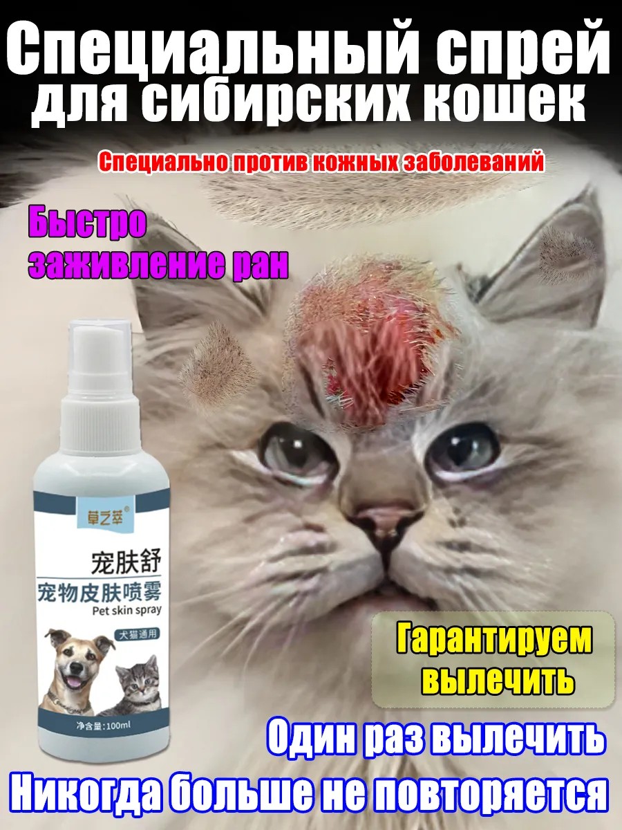 Специальный спрей для сибирских кошек, профессионально лечит и ухаживает за кожными заболеваниями.
