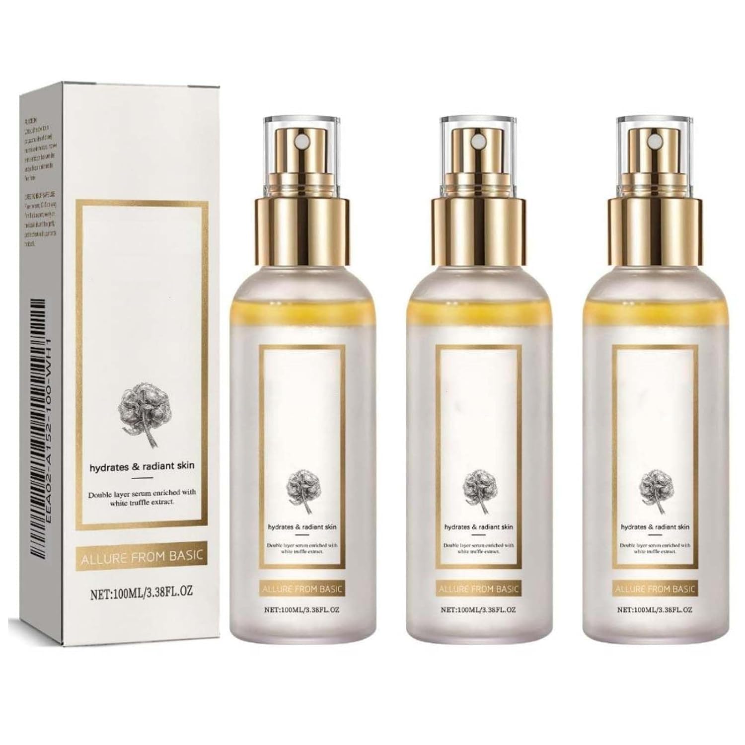 : White Truffle Serum Spray, Facial Mist, Anti-Aging Moisturizing Treatment, Brightening and Nourishing Serum, Suitable for All Skin Types. Specifications: Product Name: White Truffle First Effect Essence Spray. Contents: 100 ml. Features: Moisturizing, Hydrating Essence, Brightening Spots. Package Contents: 1 2 3 White Truffle First Effect Essence Sprays. Notes: 1. Please allow 1-5 grams 1-2 cm error due to manual measurement. 2. Due to differences in lighting and screen settings, the images may vary. The actual product color may not be identical. Thank you for your understanding. Safety Warning 5