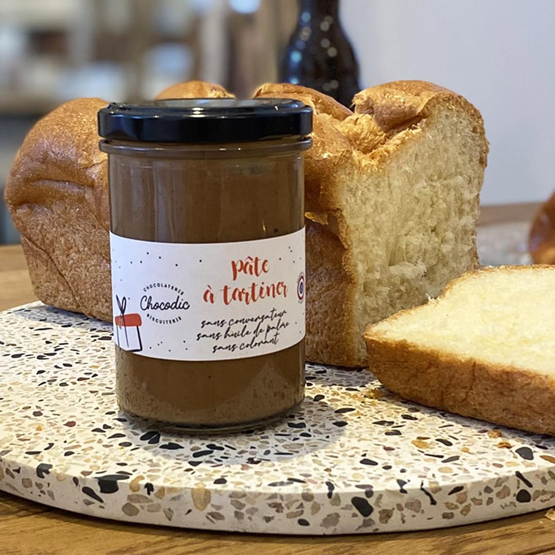 A tasty spread with quality ingredients: cocoa powder, fresh butter, hazelnut paste, our almond hazelnut praline and a smooth gianduja. No preservatives, no colorings, no palm oil, no additives. 220g glass jarAll of our products are made in our 100 artisanal family business (no artificial colors or preservatives), in an eco-responsible approach through our cocoa producers who are part of a sustainable farming action. 220g glass jar. No preservatives, no artificial colors, no palm oil, no additives. A tasty spread with quality ingredients: cocoa powder, fresh butter, hazelnut paste, our almond hazelnut praline and a creamy gianduja. Une pâte à tartiner savoureuse avec des ingrédients de qualité : de la poudre de cacao, du beurre frais, de la pâte de noisette, notre praliné amande noisette et un onctueux gianduja. Sans conservateur, sans colorant, sans huile de palme, sans additifs. Pot en verre de 220gL'intégralité de nos produits sont fabriqués au sein de notre entreprise familiale 100 artisanale (sans colorants ni conservateurs), dans une démarche éco-responsable au travers de nos producteurs de cacao qui s'inscrivent dans une action de culture durable. Pot en verre de 220g. Sans conservateur, sans colorant, sans huile de palme, sans additifs. Une pâte à tartiner savoureuse avec des ingrédients de qualité : de la poudre de cacao, du beurre frais, de la pâte de noisette, notre praliné amande noisette et un onctueux gianduja.