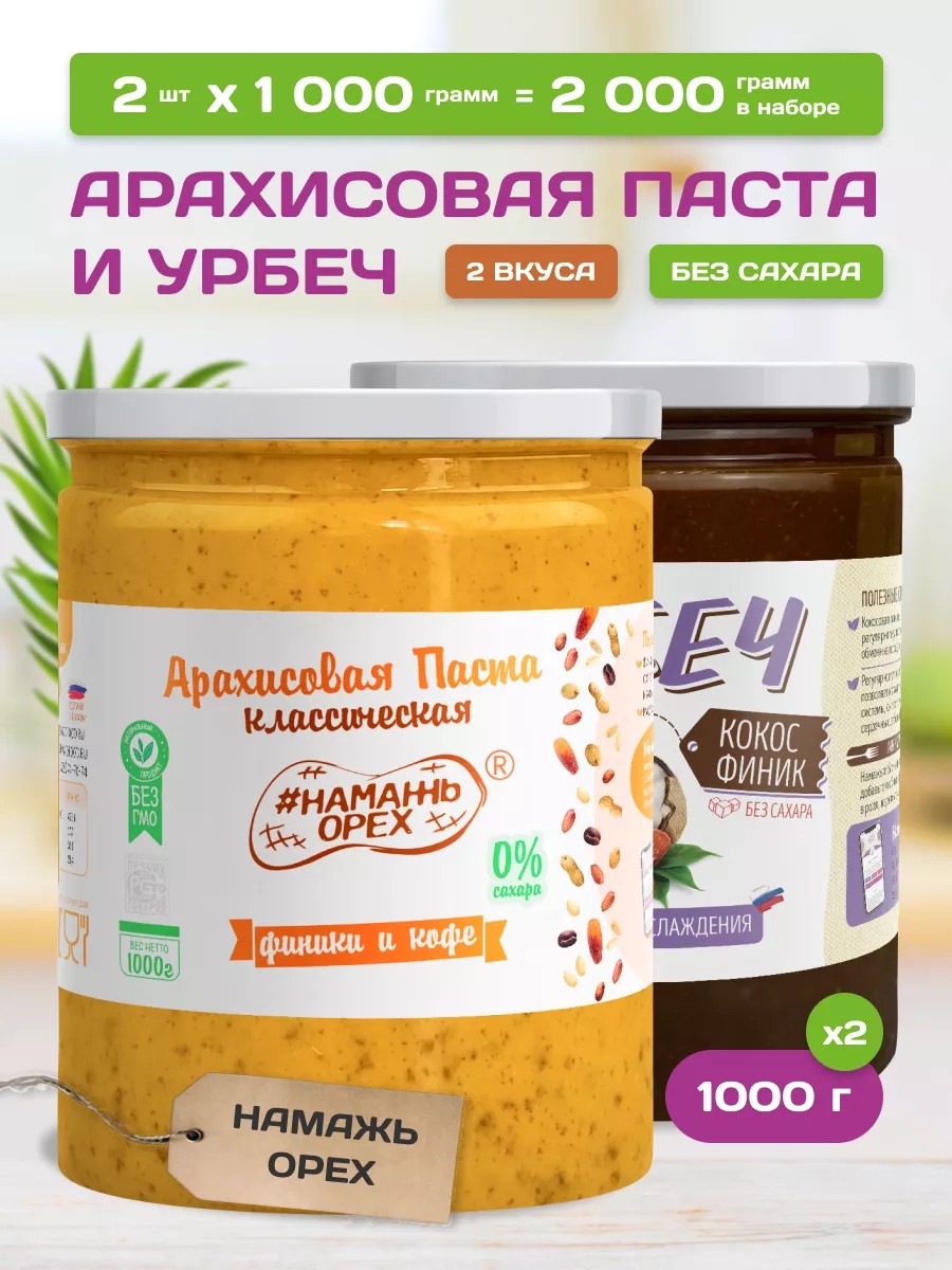 Набор арахисовая паста и урбеч без сахара 2 вкуса по 1 кг