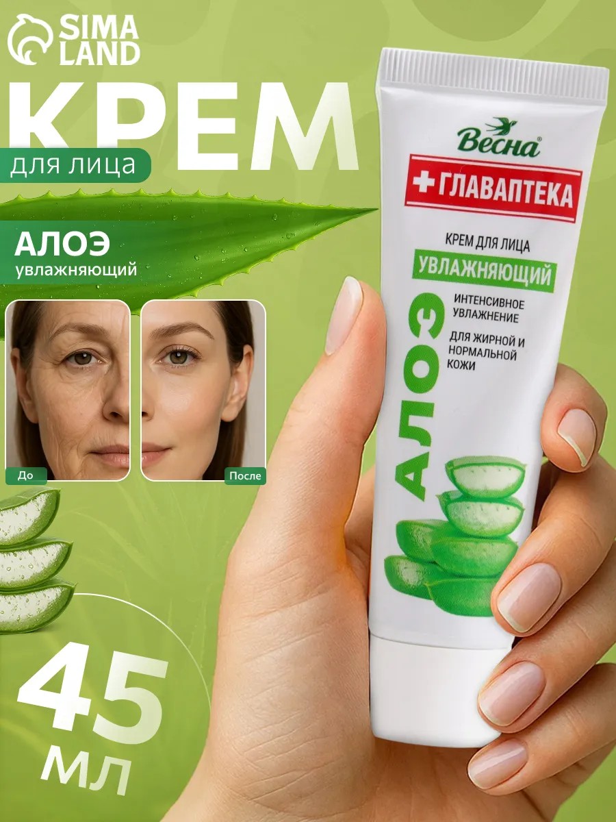Designed for normal to oily skin. It comes in a soft tube with a light consistency, a delicate, cosmetic scent, and a white, unblemished color. Aloe vera extract and a specially selected moisturizing complex tone and help maintain normal hydrolipid balance. This moisturizing cream prevents cell aging, stimulates cell regeneration, smoothes fine wrinkles, eliminates irritation and flaking, actively softens, and effectively provides balanced nourishment, soothes the skin, and restores its natural color. This Aloe Vera face cream leaves skin soft, hydrated, velvety, and nourished, reducing flaking. It absorbs quickly, leaves no greasy shine or stickiness, and doesn't clog pores. It's also suitable as a makeup base.