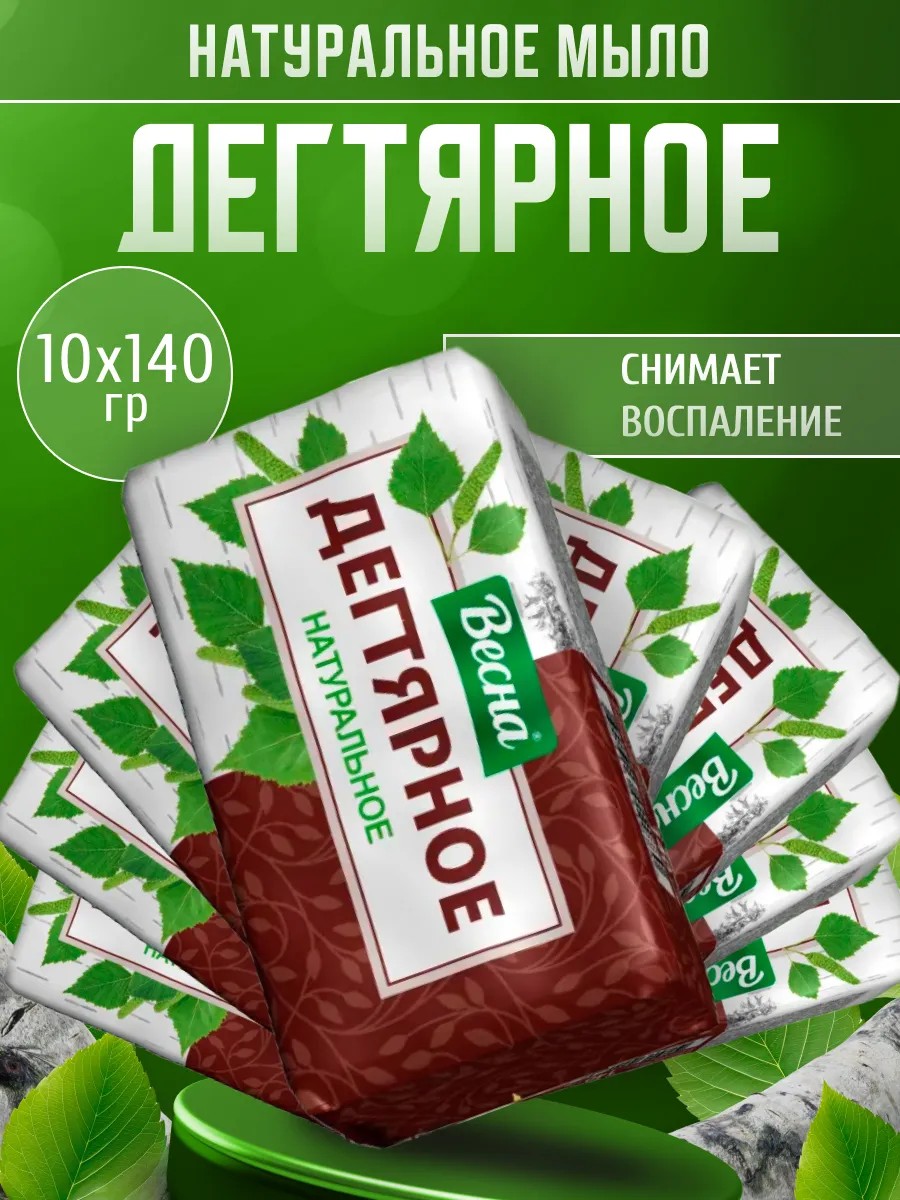 Натуральное твердое кусковое мыло для умывания Весна 140г с березовым дегтем предназначено для кожи рук, лица, тела, для ванночек ног. В дегтярном мыле присутствует специфический запах, но он нежный и ненавязчивый. В состав мыла входит важный компонент глицерин, бережно ухаживающий за кожей. Мыло не раздражает кожу и устраняет жирный блеск, мягко очищает кожу, не сушит и не стягивает ее. Дегтярное мыло рекомендуется людям с жирной и проблемной кожей, так как оно тщательно очищает и избавляет от прыщей, обладает антибактериальными, противовоспалительными свойствами.