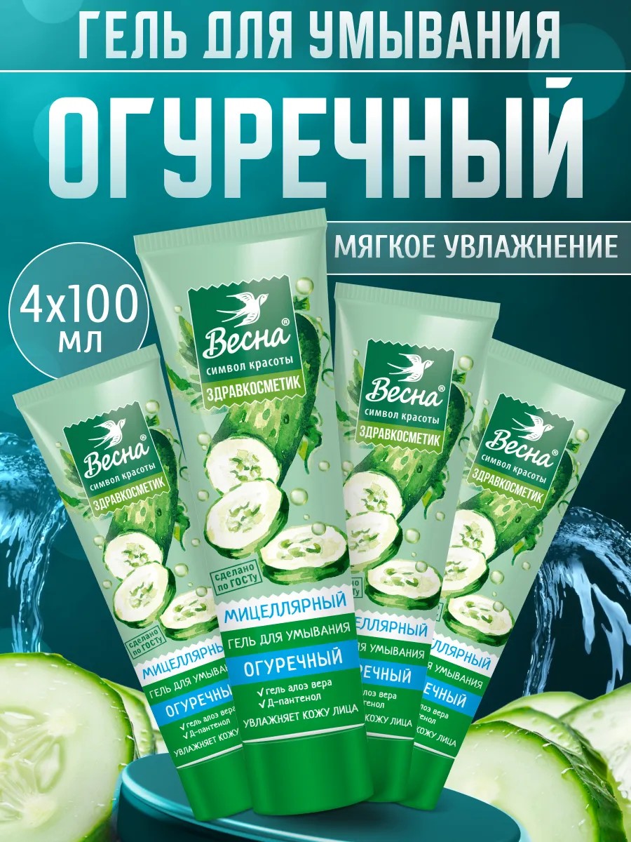 Natural Cucumber Cleansing Gel with Aloe Vera gently cleanses the skin of daily impurities and makeup, removing excess sebum. Cucumber, aloe, and panthenol extracts in the gel improve skin tone, promote moisture retention, normalize the epidermal water-lipid balance, and have anti-inflammatory and antibacterial properties. This cleansing and toning facial gel from Zdravkosmetik eliminates irritation, inflammation, dryness, and flaking, removes toxins, and stimulates collagen and elastin production. This facial gel is suitable for all skin types. Active natural ingredients in the gel prevent inflammation, blackheads, and acne, deeply moisturize and nourish the skin. Regular use of the gel evens out skin tone, leaving skin smooth, silky, elastic, and radiant. The original PCC Vesna gel does not contain any low-quality ingredients. We take product quality very seriously. Please feel free to leave feedback! We respond to every review and will be sure to provide you with feedback.