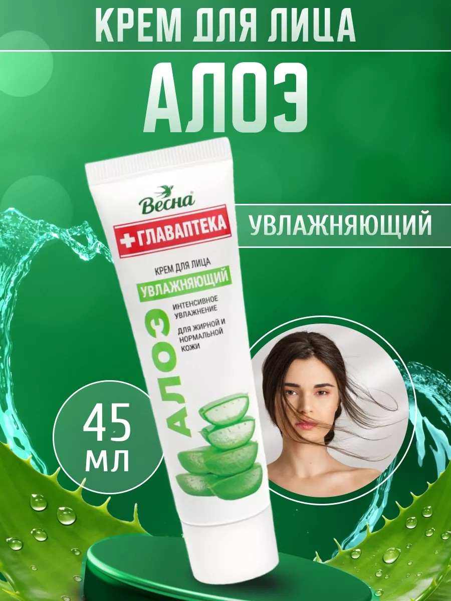 Крем для ухода за лицом Главаптека Алоэ предназначен для ухода за нормальной, жирной кожей. Консистенция легкая в мягкой тубе, запах нежный, цвет белый. Входящие в состав крема экстракт алоэ вера и специально подобранный увлажняющий комплекс тонизируют, способствуют поддержанию в норме воднолипидного баланса. Препятствует старению клеток, стимулирует их регенерацию, разглаживает мелкие морщинки, устраняет раздражения, шелушения, активно смягчает, эффективно, сбалансированно питает, успокаивает дерму, возвращает ей естественный цвет. Крем для лица с Алое делает кожу мягкой, увлажненной, бархатистой, напитанной. Быстро впитывается, не оставляет жирного блеска, ощущения липкости, не забивает поры. Подойдет в качестве основы под макияж. Оригинальный крем ПКК Весна исключает наличие в составе некачественных компонентов. Мы внимательно относимся к качеству товаров. Пожалуйста, не стесняйтесь оставлять отзывы! Мы реагируем на каждый отзыв и обязательно дадим Вам обратную связь.