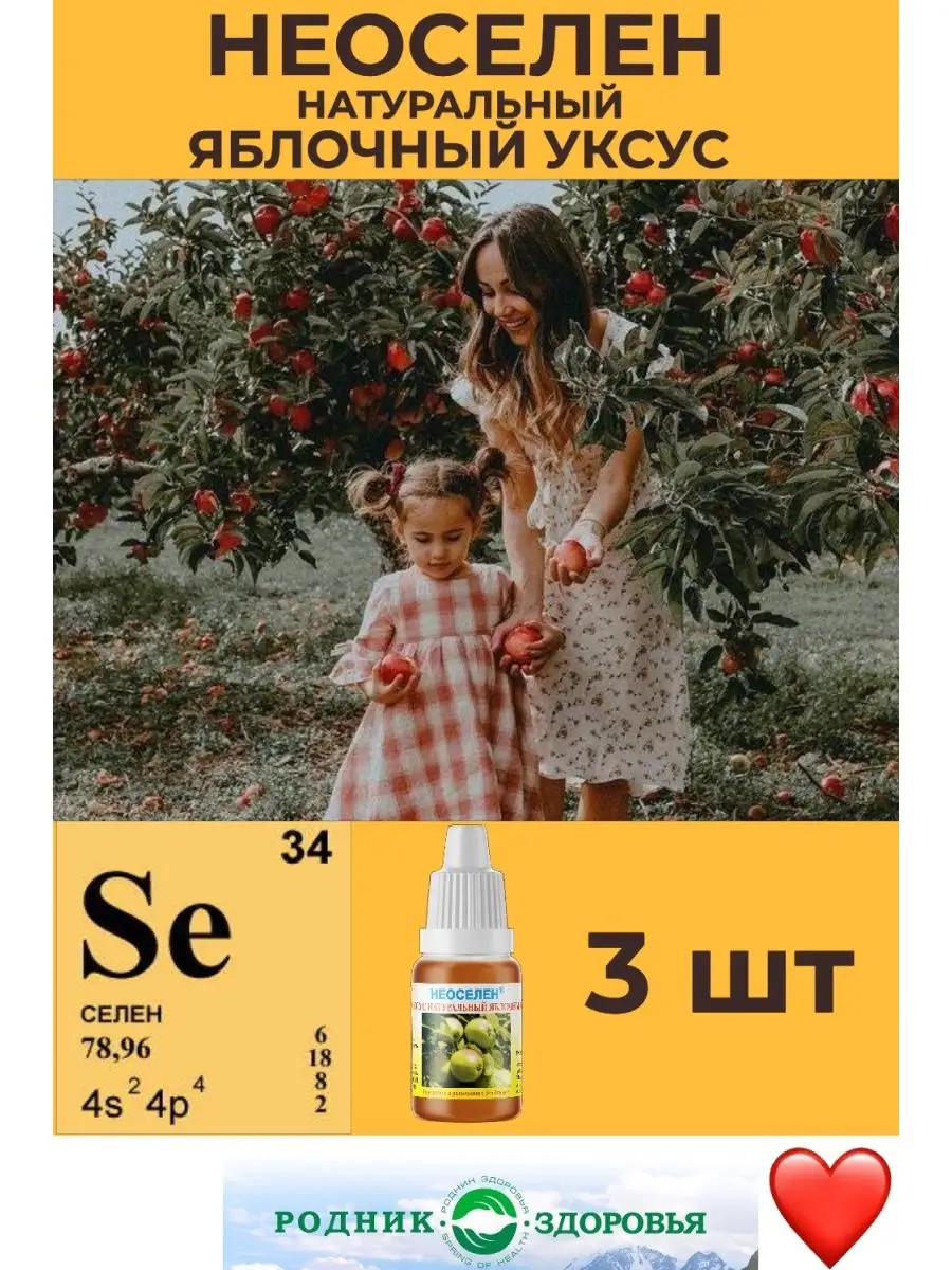 Родник Здоровья Неоселен Натуральный Яблочный Уксус 3 шт