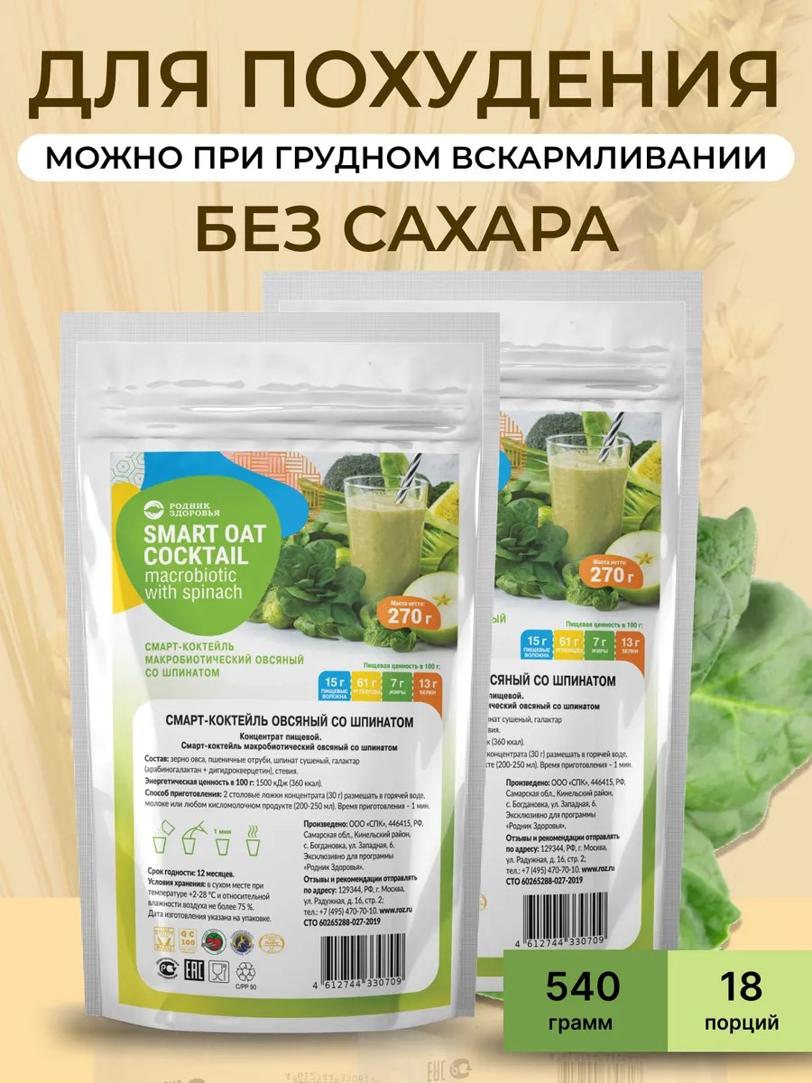 Родник Здоровья Коктейль овсяный со шпинатом для похудения 2 шт