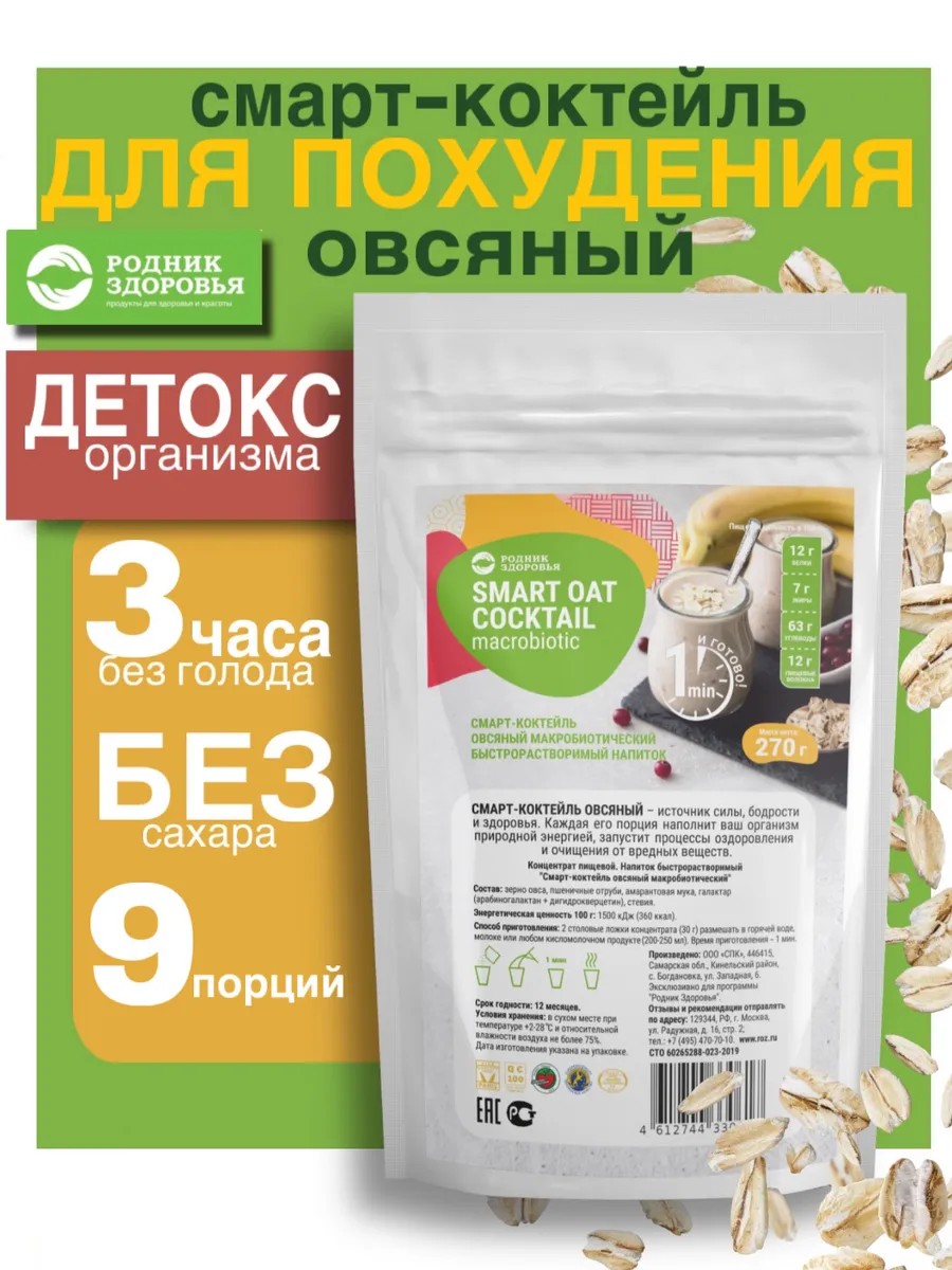 Родник Здоровья Смарт коктейль для снижения веса овсяный