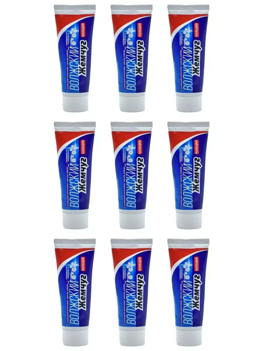 Весна Зубная паста, Волжский жемчуг, Кальций. Обладает всеми преимуществами ухода за полостью рта, которые необходимы для ежедневного использования вашей семье. При чистке зубов 2 раза в день зубная паста также защищает от образования зубного налета и поддерживает здоровье десен. В комплекте 9 штук.