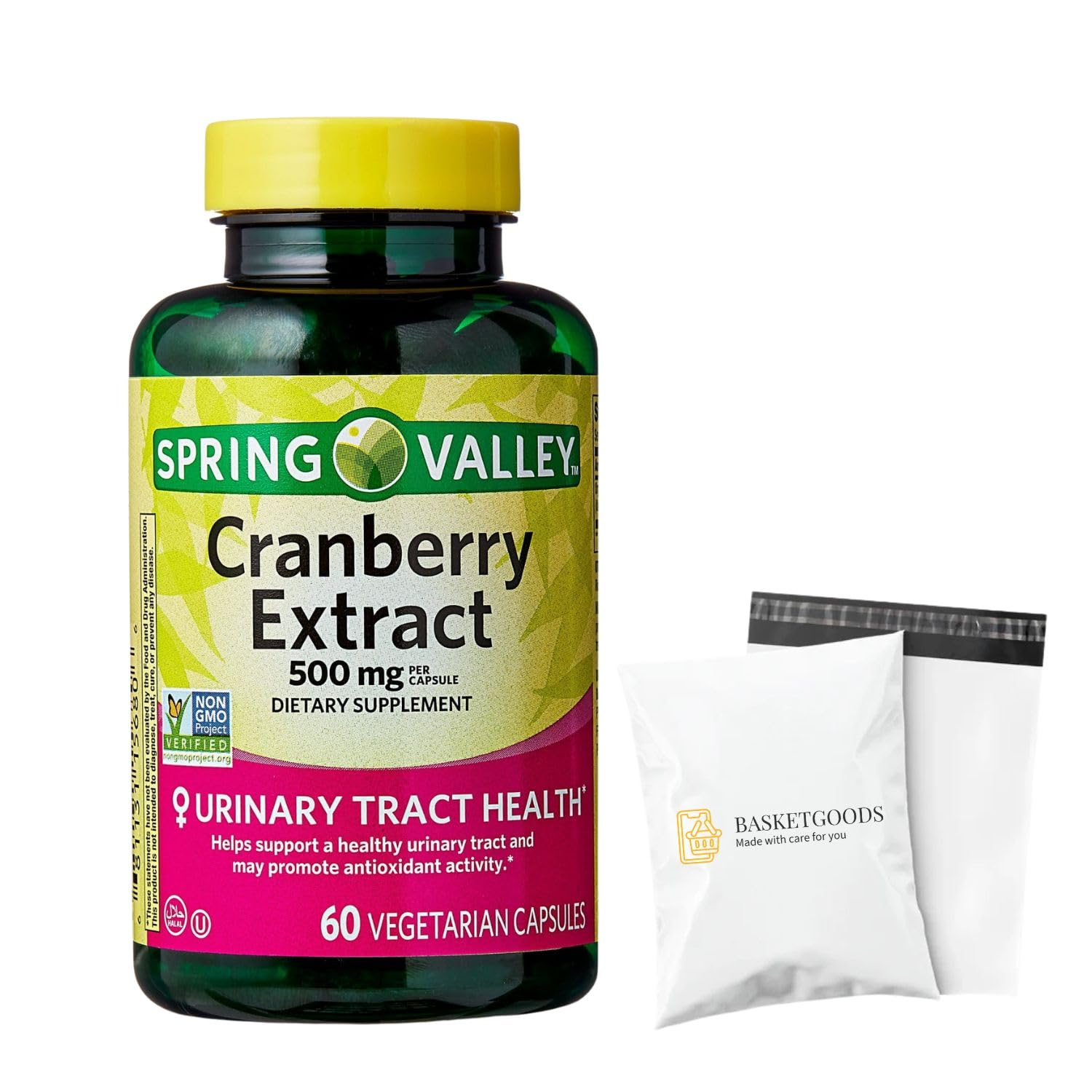 Spring Valley Cranberry Extract 500 mg - 60 Vegetarian Capsules - Set by Basket Goods