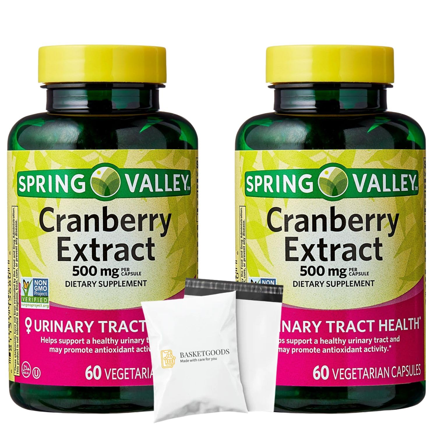 Spring Valley Cranberry Extract 500mg 60 Count Vegetarian Capsules for Women Urinary Tract Health 2 Pack - Set by Basket Goods