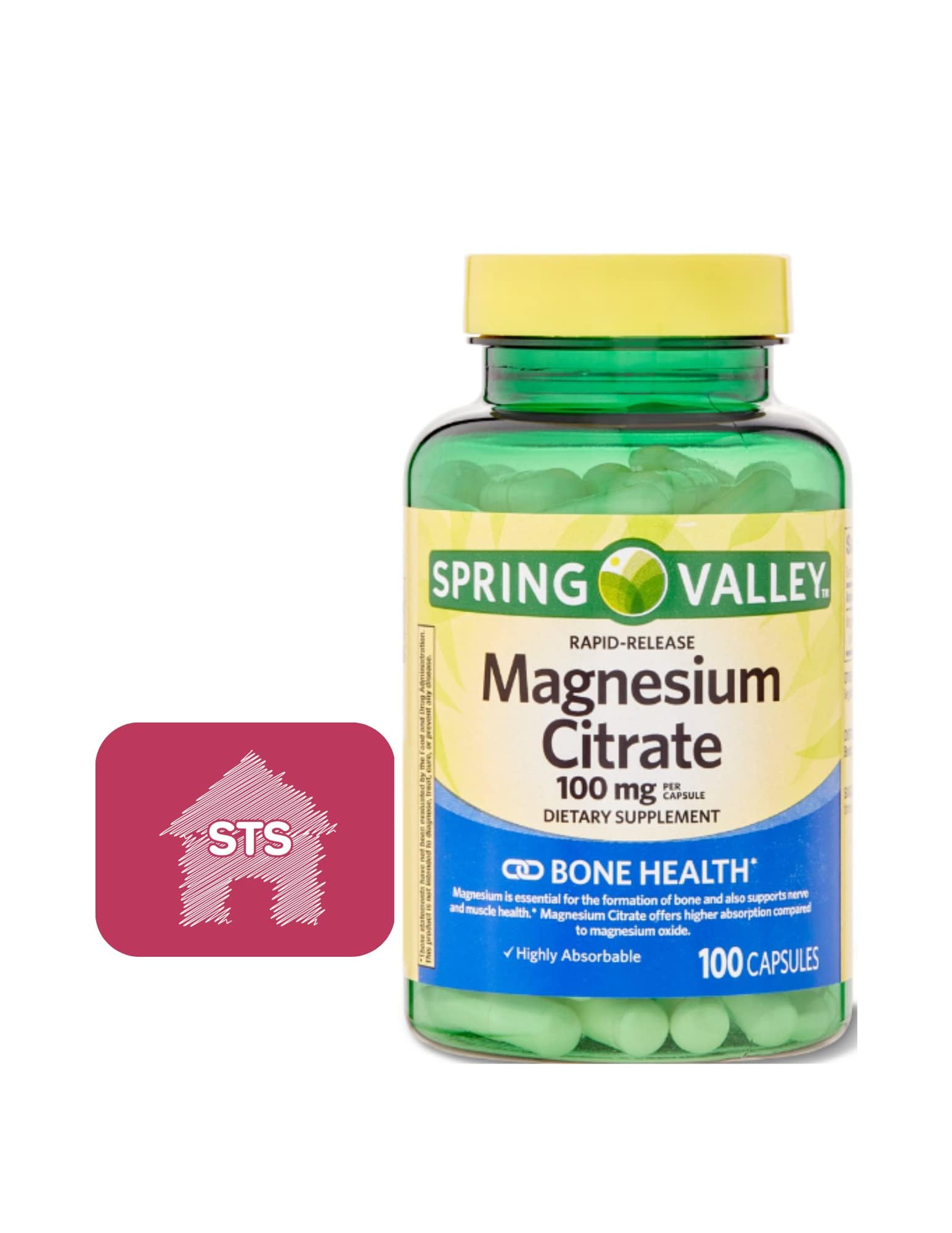 Spring Valley - Magnesium Citrate 100 mg Rapid-Release 100 Capsules + STS Sticker.