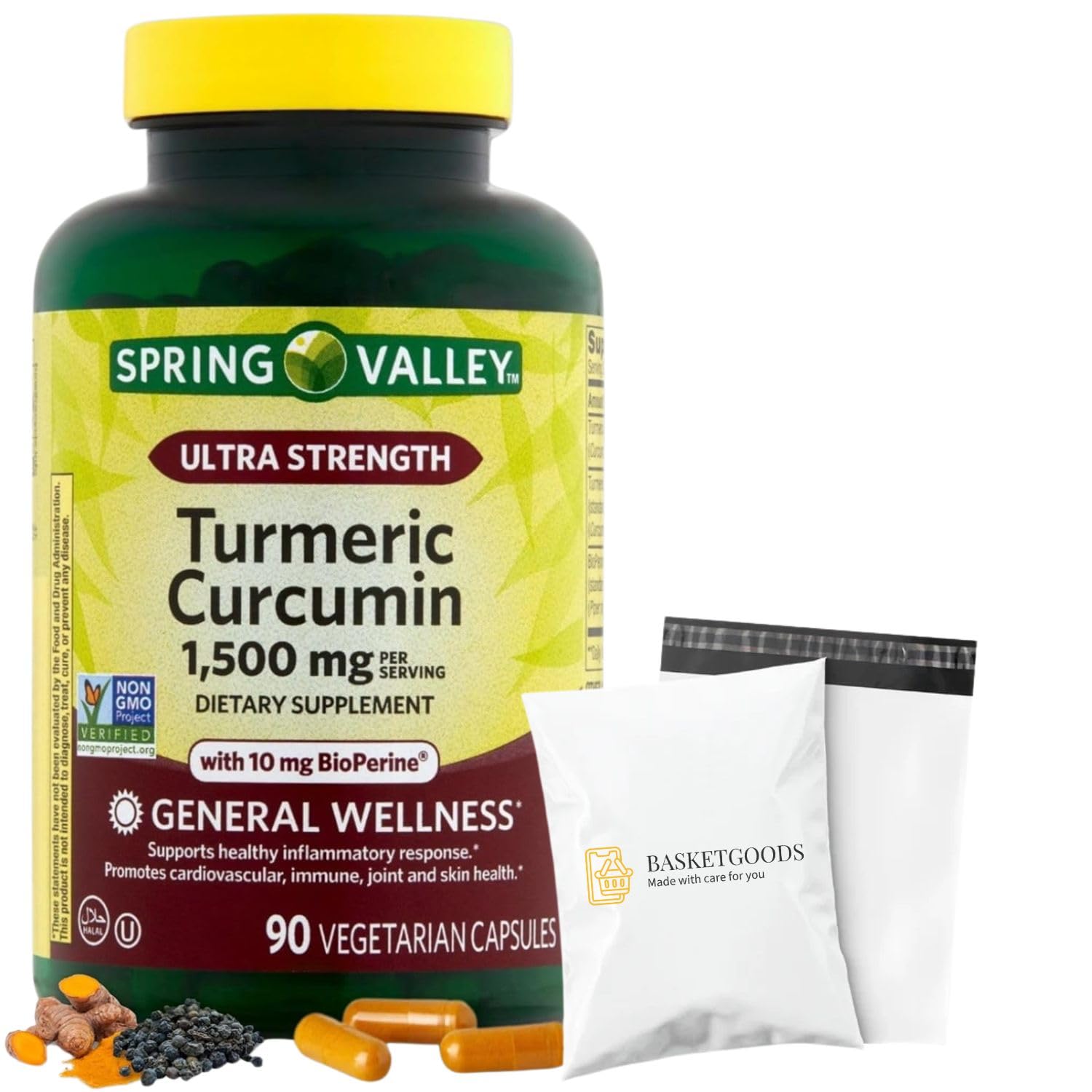 Spring Valley Turmeric Curcumin 1500mg- with Black Pepper Capsules 90ct (Pack of 1) Set by Basket Goods