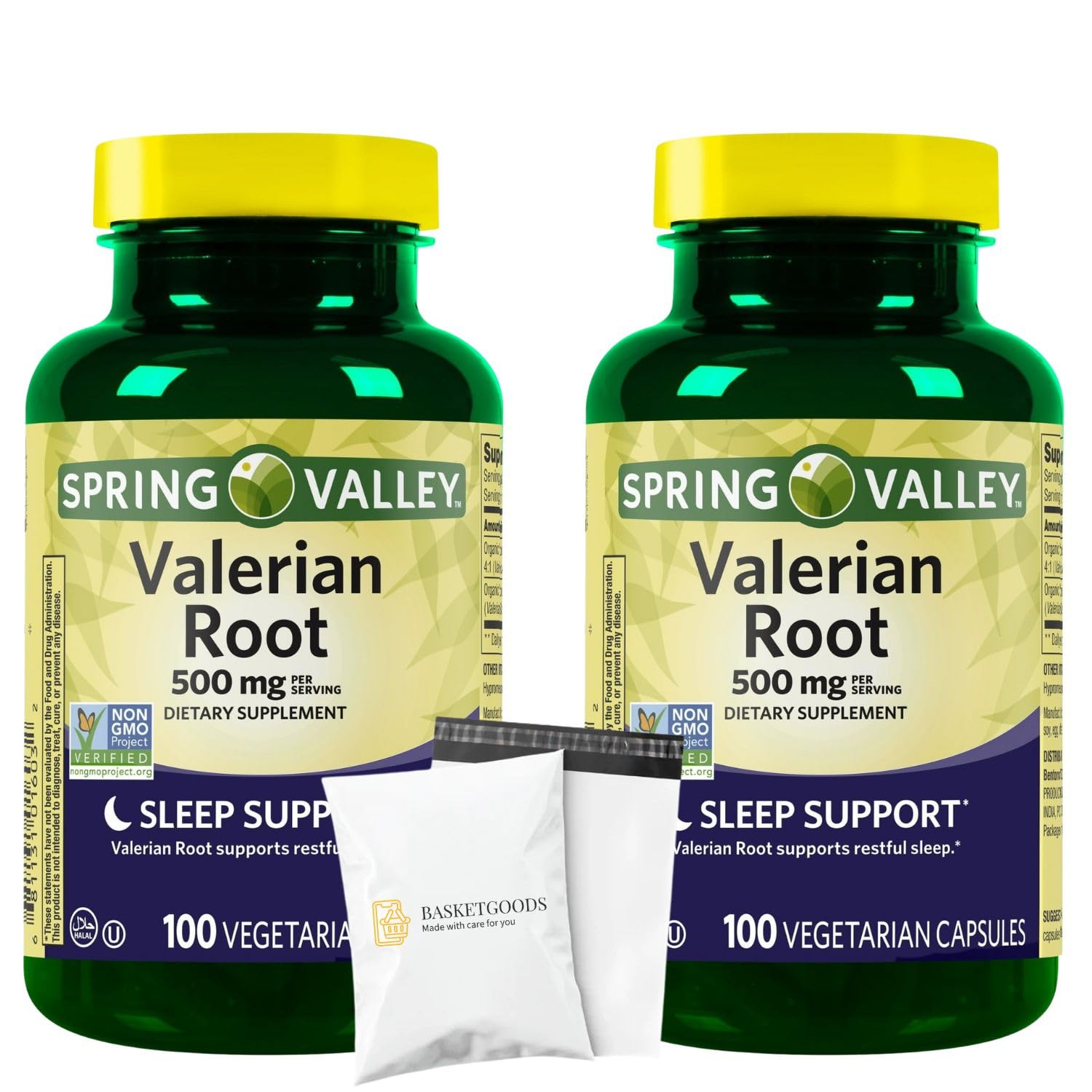 Spring Valley Valerian Root 500mg- Vegan Capsules 100 Ct (Pack of 2) Set by Basket Goods