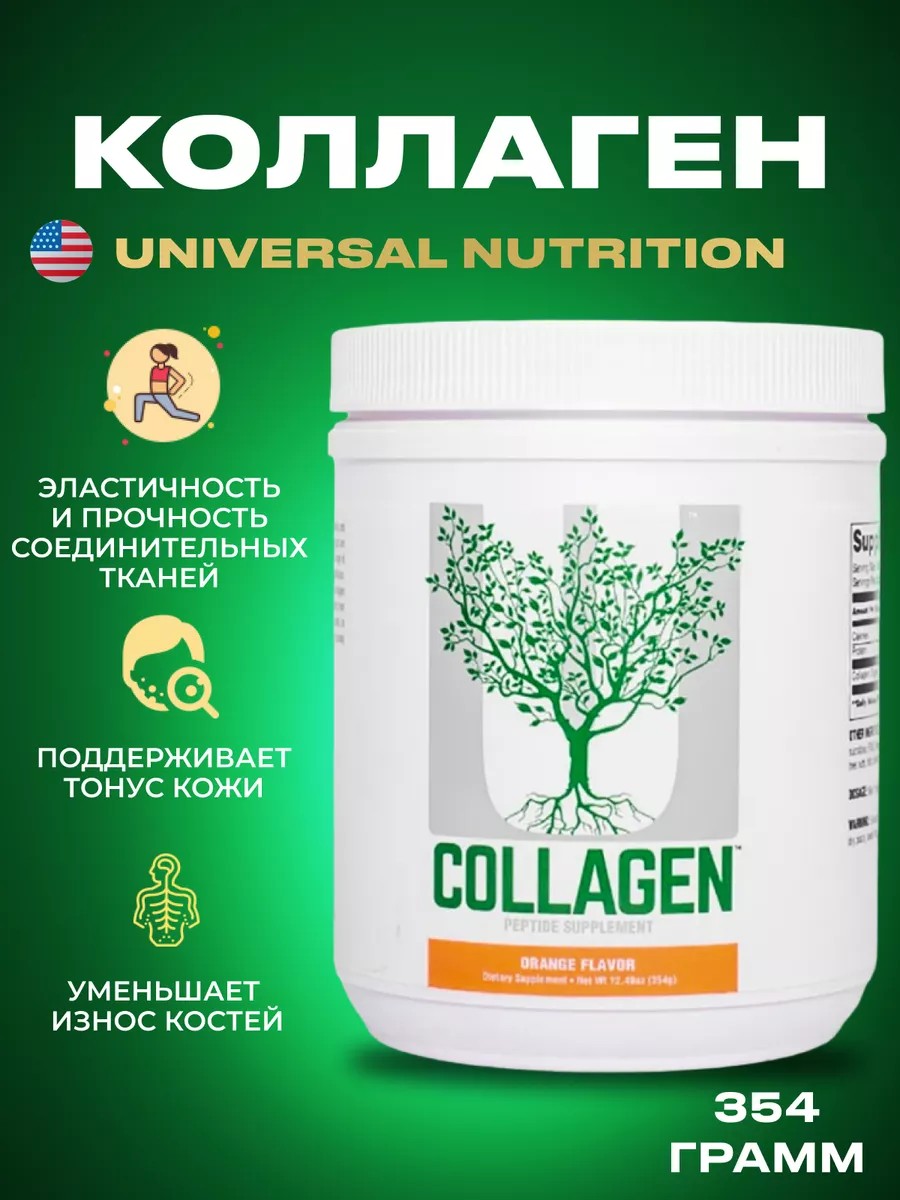 Коллаген Universal Nutrition для вашей красоты и здоровья содержит гидролизованный коллаген 1 и 3 типов высокой биодоступности. Коллаген является ключевым структурным белком, который обеспечивает эластичность и прочность всех наших соединительных тканей, включая кожу, сухожилия, связки, хрящи и кости. От него во многом зависит красота волос, ногтей, гибкость и тонус мышц. Поддерживает тонус кожи, ее увлажненность, стимулирует сглаживание небольших морщи. Уменьшает износ костей, связок и суставов. Помогает укреплению волос и ногтей. Положительно влияет на эластичность сосудов и здоровье желудочно-кишечного тракта. Применение: Смешать 1 чайную ложку с 240-300 мл напитка по вашему выбору.