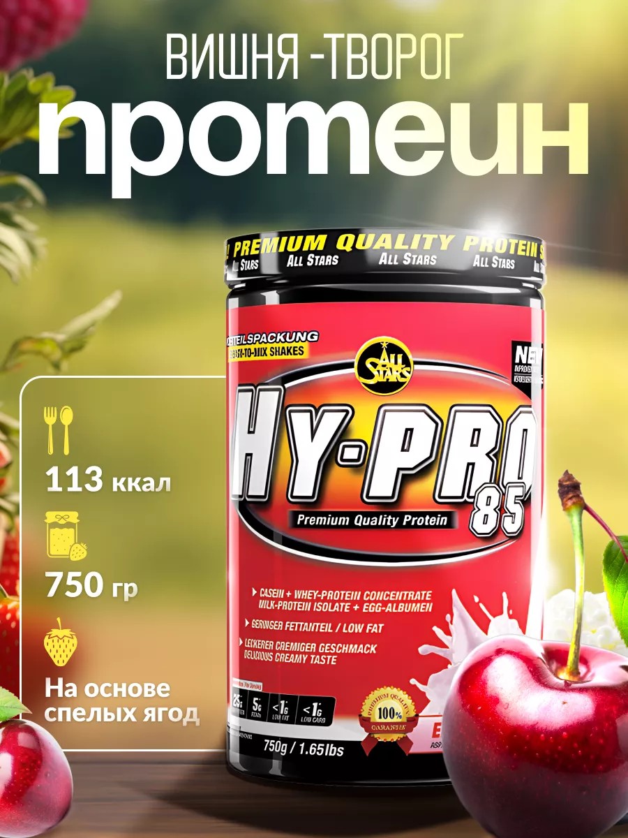 Протеин многокомпонентный Hy-Pro 85 грамм со вкусом вишни творог является продвинутым белковым комплексом, созданным для тех, кто стремится к максимальной мышечной отдаче и быстрому восстановлению. Представленный в виде четырёхкомпонентной биоактивной протеиновой формулы, он совмещает в себе очищенный казеинат кальция, сывороточный протеин концентрата, изолята молочного протеина и яичный альбумин каждый из которых имеет свою скорость усвоения, что обеспечивает продолжительную поддержку аминокислотного баланса в течение всего дня. В каждой порции содержится 6 грамм ветвистых аминокислот ВСАА, что делает его особенно ценным для поддержания положительного азотистого баланса и стимулирования синтеза белка в мышечных тканях. Это количество бцаа в сочетании с полным спектром незаменимых и заменимых аминокислот способствует мышечному росту и ускоренному восстановлению после физических нагрузок. К тому же, с его помощью можно легко контролировать потребление жиров и углеводов, в комплексе от All stars содержится менее 1 грамма этих веществ на порцию. Отличительной особенностью Hy Pro является его способность прекрасно растворяться в жидкости, что облегчает его прием, а также разнообразие вкусов обеспечивает удовольствие от каждого коктейля. Включение в состав комплекса водорастворимых витаминов и ферментов делает его не просто белковым добавкой, но и источником дополнительных питательных веществ. Для получения максимального эффекта рекомендуется смешивать 2 мерные ложки продукта с 200-400 мл воды или молока и употреблять данную смесь. В тренировочные дни рационально принимать одну порцию между основными приемами пищи, а также за час до и немедленно после занятий спортом, что способствует поддержанию энергии и восстановлению. В дни отдыха употребление 2-3 порций между едой поможет поддерживать анаболический процесс и предотвратить катаболизм.