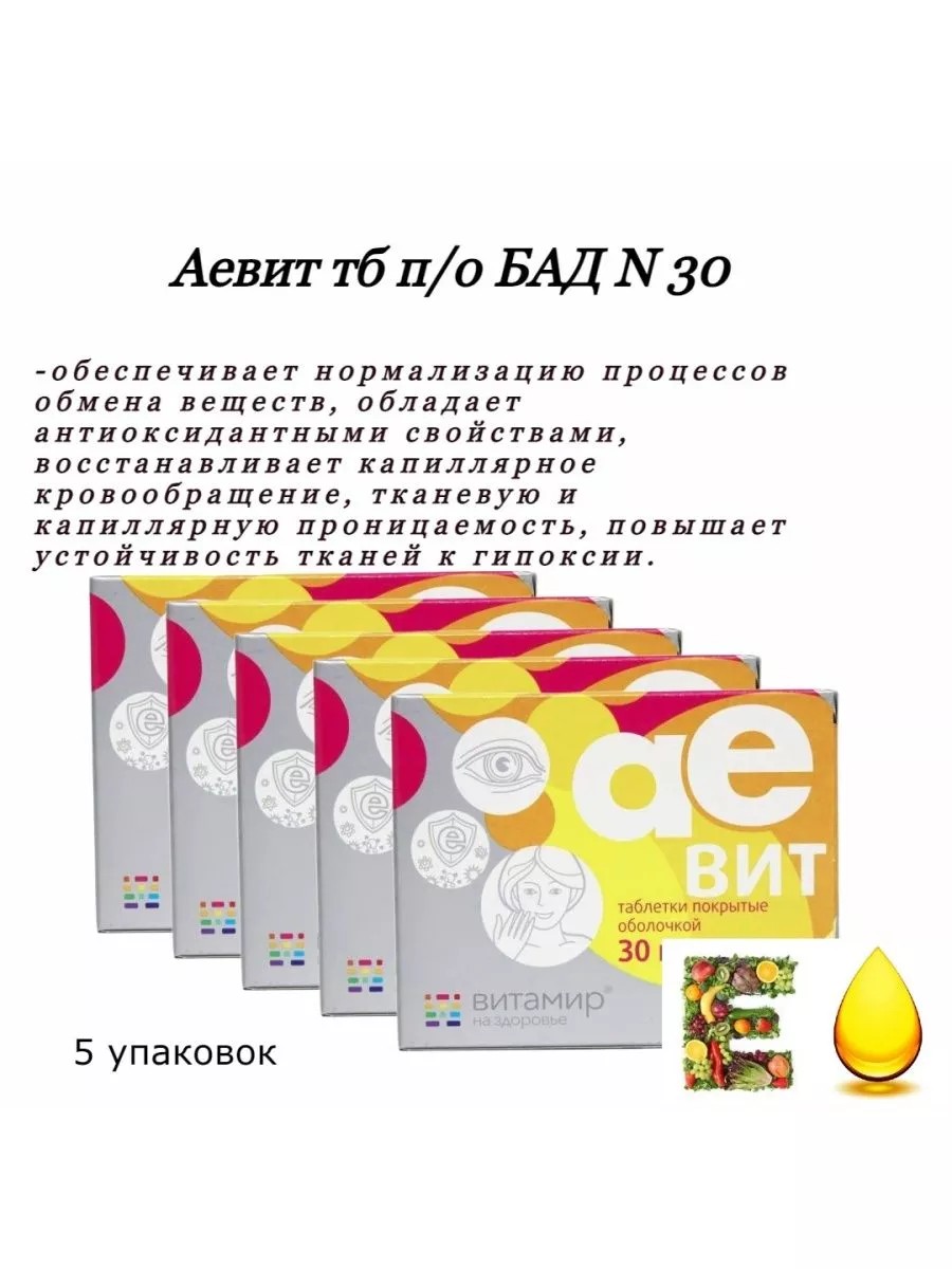 Aevit is a source of vitamins A and E. It normalizes metabolic processes, has antioxidant properties, restores capillary circulation, tissue and capillary permeability, and increases tissue resistance to hypoxia. It is used for vascular atherosclerosis, tissue trophic disorders, obliterating endarteritis, hypovitaminosis A and E, or increased need for vitamins A and E in various diseases.