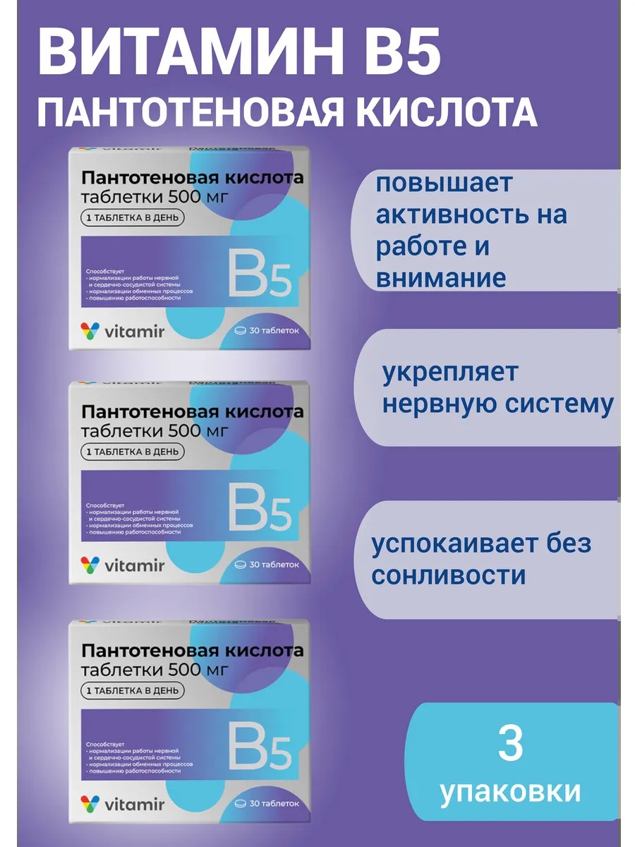 БАД "Пантотеновая кислота таблетки 500 мг" - биологически активная добавка к пище, содержащая витамин В5, обладающий исключительно важной для организма ролью благодаря своей коферментной форме. В ходе ряда химических превращений пантотеновая кислота (витамин В5) участвует в циклах окисления жиров и углеводов, тем самым способствуя нормализации обменных процессов и выделению энергии, затрачиваемой при физических и умственных нагрузках. Кроме этого, являясь структурным компонентом кофермента А, пантотеновая кислота включается в реакции синтеза медиатора ацетилхолина. Он, в свою очередь, необходим для поддержания нервной деятельности и обеспечения устойчивого психоэмоционального состояния. Витамин В5 также благотворно влияет на работу сердечно-сосудистой системы, нормализуя уровень холестерина в крови, и на работу надпочечников, стимулируя выработку стероидных гормонов. В дополнение к этому витамин помогает стимулировать восстановительные процессы при операциях и ранениях. Также в нашем магазине вы можете купить бады и витамины для детей подростков и взрослых мужчин женщин и девушек мультивитамины и поливитамины витаминные и витаминно-минеральные комплексы для иммунитета здоровья кожи лица ногтей волос добавки для суставов мозга энергии нервной системы и работоспособности капсулы от усталости и стресса жиросжигатели для похудения и снижения веса БАДы для сердца печени желудка глаз спортивное питание аминокислоты В том числе: хром цинк хондроитин глюкозамин кальций железо магний коллаген витамины а б с д д3 витамин d3 5000 2000 инозитол b комплекс коллаген морской и говяжий порошок селен тирозин коэнзим калий магний коллаген женьшень gaba карнитин таурин йод спирулина аргинин калий магний цимицифуга глицин холин альфа липоевая кислота гиалуроновая кислота шиповник гинкго билоба мака карнозин триптофан джимнема лецитин венотоник цинк цитрат витамин в12 витамины для волос и ногтей l-карнитин аргинин черника для глаз липотропный фактор 5 htp янтарная кислота витамин в12 в6 д3 цитруллин омега3 и омега 3 6 9 дигидрокверцетин пажитник магний в6 кальций д3 расторопша мелатонин 3 мг креатин теанин йохимбе фолиевая кислота 500 эхинацея пантотеновая кислота инозитол 1000 куркумин имбирь + чеснок гуарана валериана пробиотик биотин лизин витамины группы в всаа бцаа bcaa изотоники элеутерококк глюкозамин хондроитин мсм / msm орнитин треонин бузина пролин кордицепс хром хелат лейцин инулин кордицепс рейши шиитаке медь хелат глютамин глутатион метионин зеленый чай предтреник д манноза zma зма протеиновые батончики цистеин витамины для беременных витамины для волос витамины от выпадения витамины для роста волос витамины для кожи и ногтей и другие пищевые добавки.