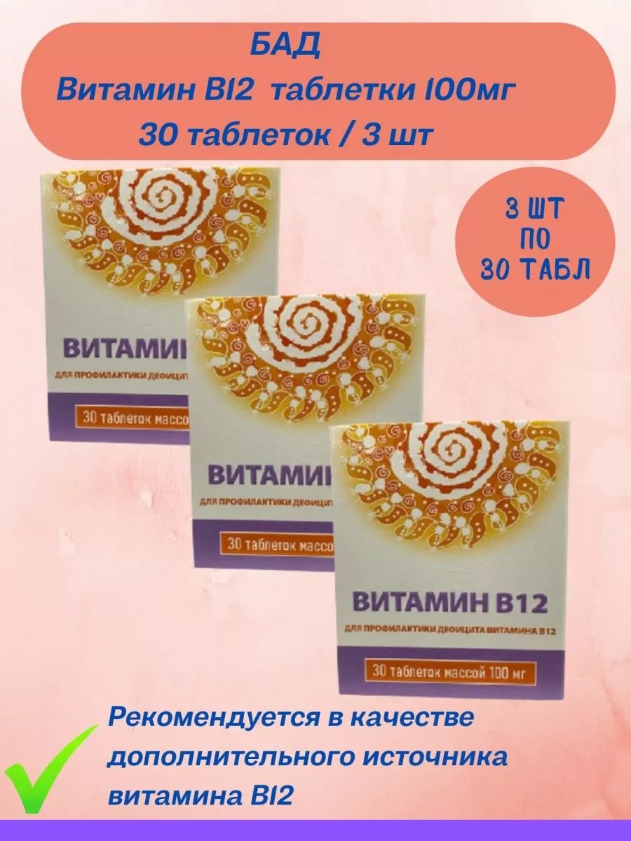 Витамин В12 БАД 100 мг по 30 таблеток - 3 уп